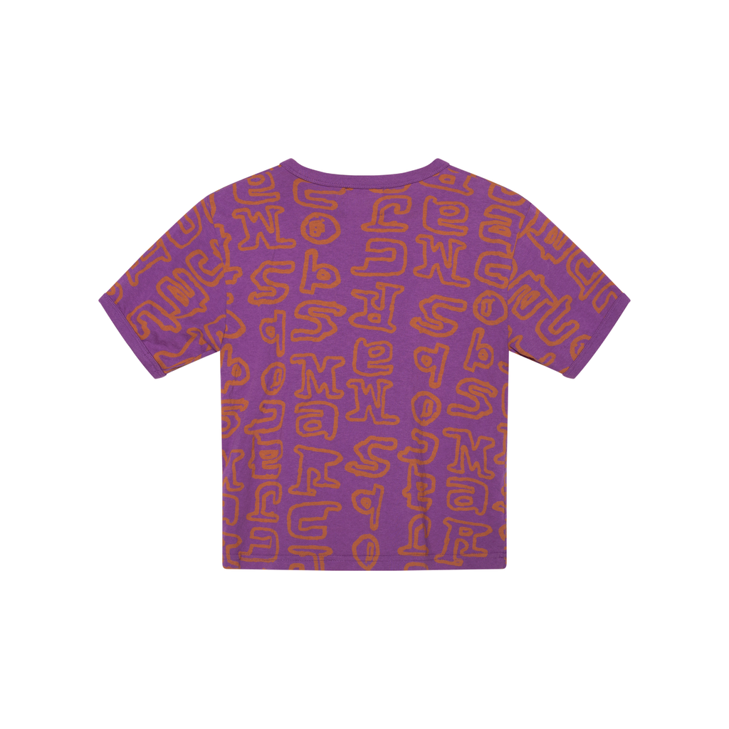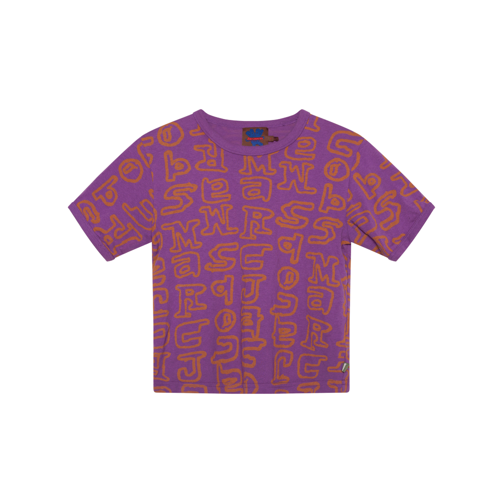 Heaven by Marc Jacobs Purple Graphic Tee features all over brown letter print and slightly cropped boxy fit.