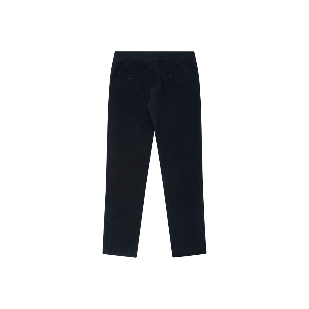 Helmut Lang Black Straight Leg Trousers features slim straight leg, front zip and hook and eye closure, 4 pockets, and small slit at ankle.