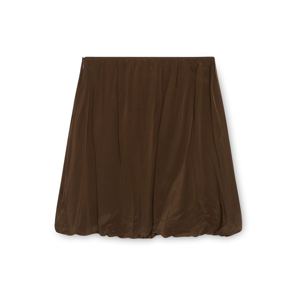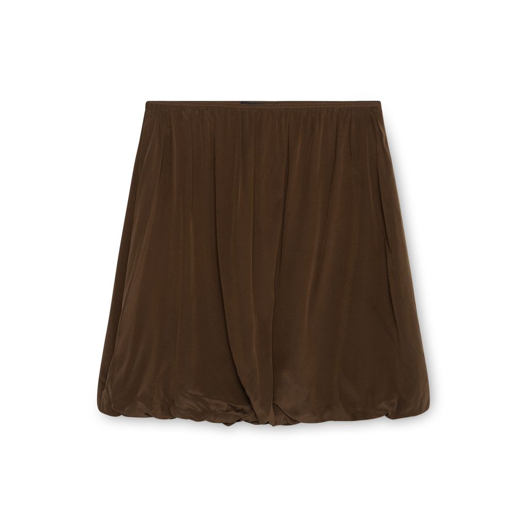 Helmut Lang Brown Silk Skort features hidden side zip closure and snap button closure to convert between skirt and shorts.