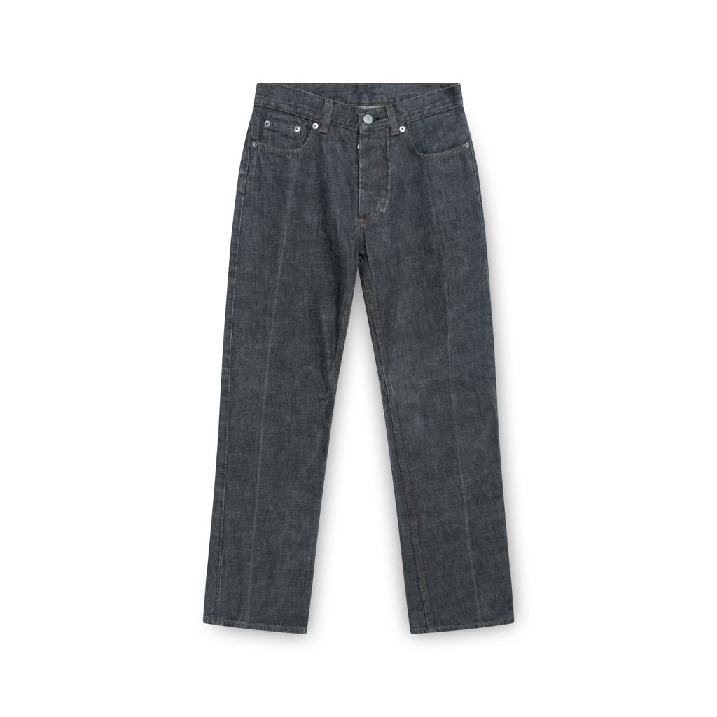 Helmut Lang Grey Jeans features front button up closure, 5 pocket styling, and slim fit.
