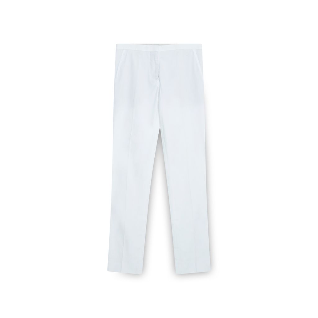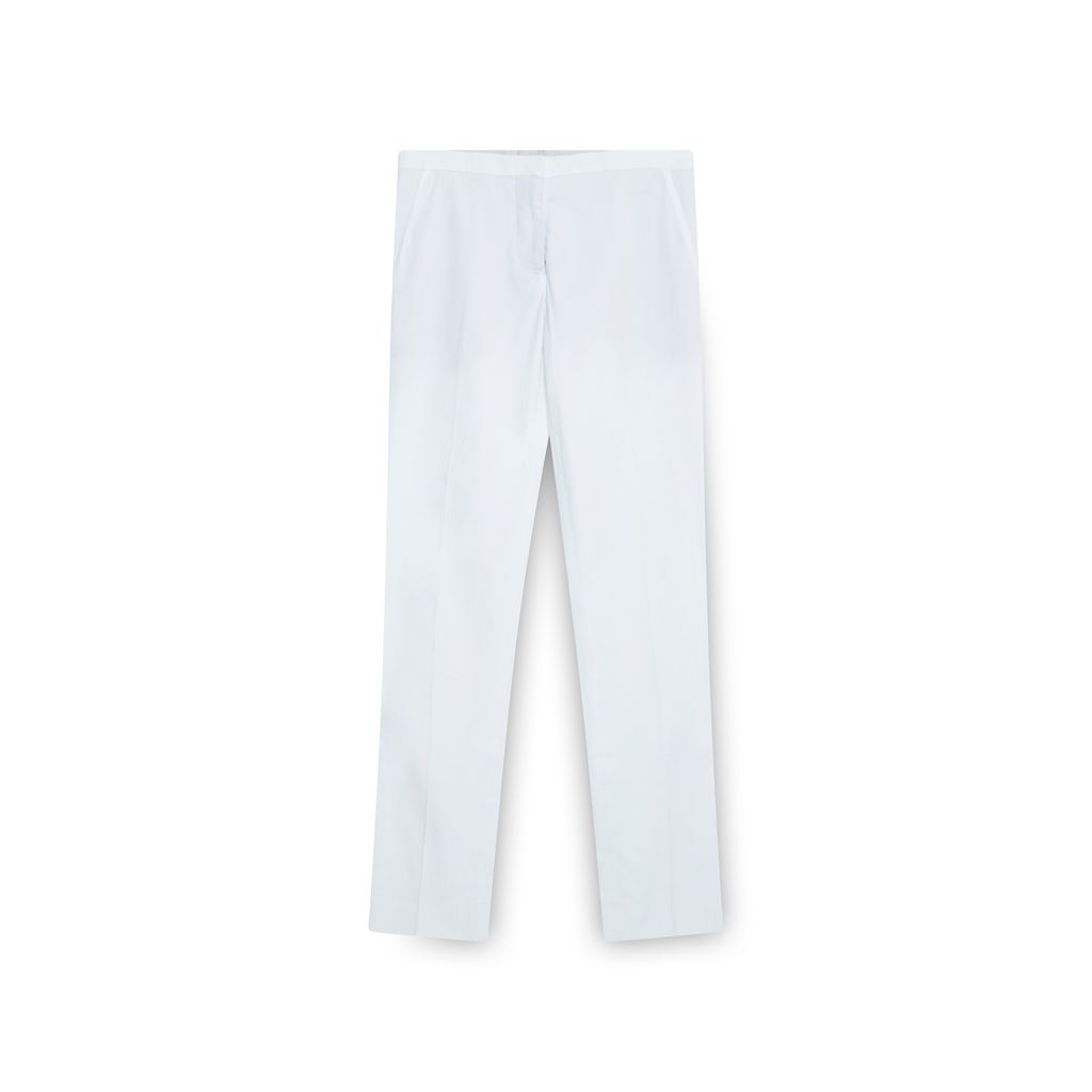 Helmut Lang White Pants features hook and eye closure, 4 pocket closure, and slim fit.