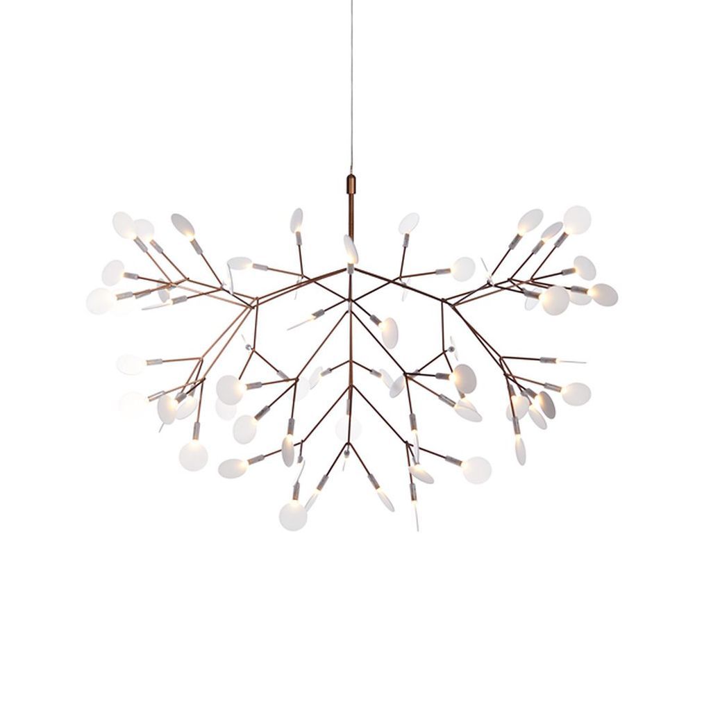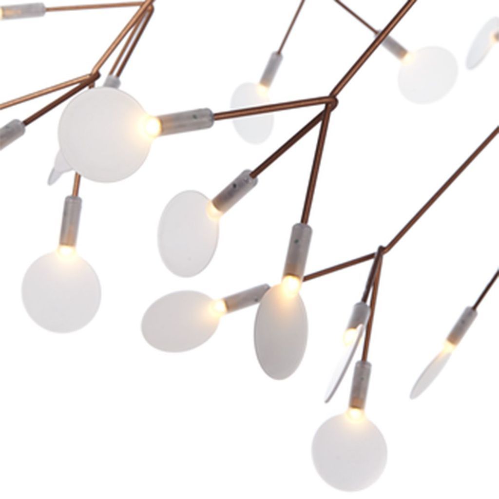 Listed for sale are two (sold separately) Heracleum II suspension lamps made of a metal frame with a copper finish and polycarbonate lenses. The lamp was designed by Bertjan Pot and produced by Moooi in the Netherlands. It dates to circa 2022 and is guaranteed as authentic. Condition is excellent without notable signs of wear. It appears to have never been hung up and came from MOOOI directly in its original box.