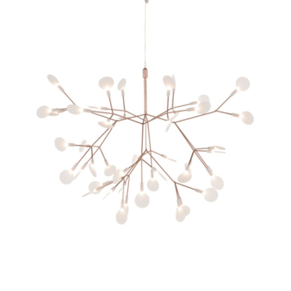 Listed for sale are two (sold individually) small Heracleum II Suspended lamps made of a metal frame with a copper finish and polycarbonate lenses. The lamp was designed by Bertjan Pot and produced by Moooi in the Netherlands. It dates to circa 2022 and is guaranteed as authentic. Condition is excellent without notable signs of wear. It appears to have never been hung up and came from MOOOI directly in its original box.