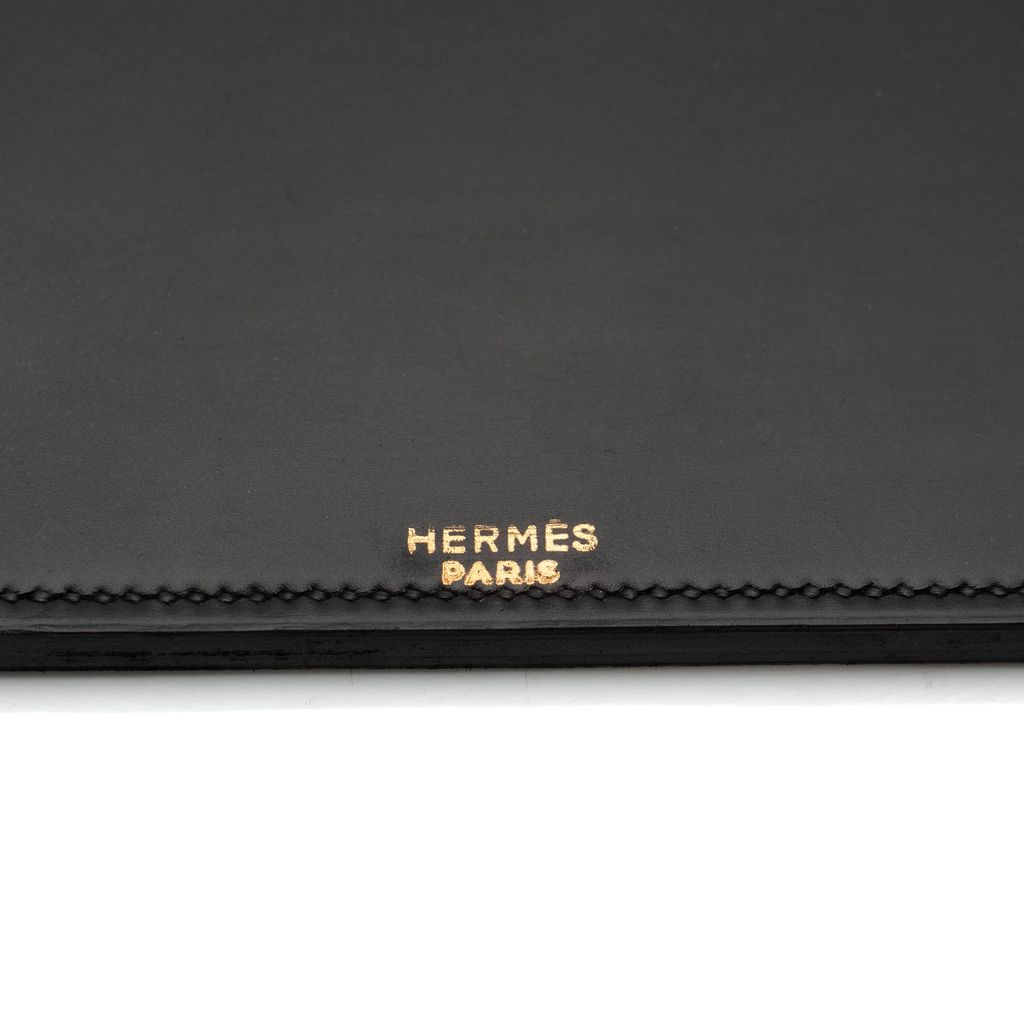 A fine desk set by Hermes, consisting of a writing pad and a combination inkwell pentray, each in black calfskin leather. This chic and practical set will be a perfect companion to any desk, study or office.