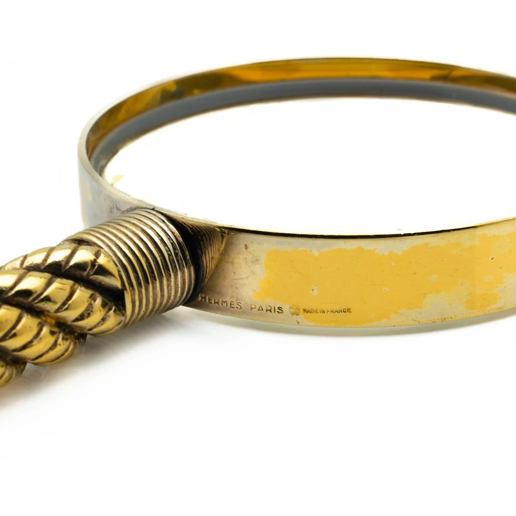 An iconic magnifier by Hermes, in their famed ‘rope’ motif. Crafted out of a heavy-gauge brass, silver plated, this classic desk accessory is a perfect balance between luxury and practicality.