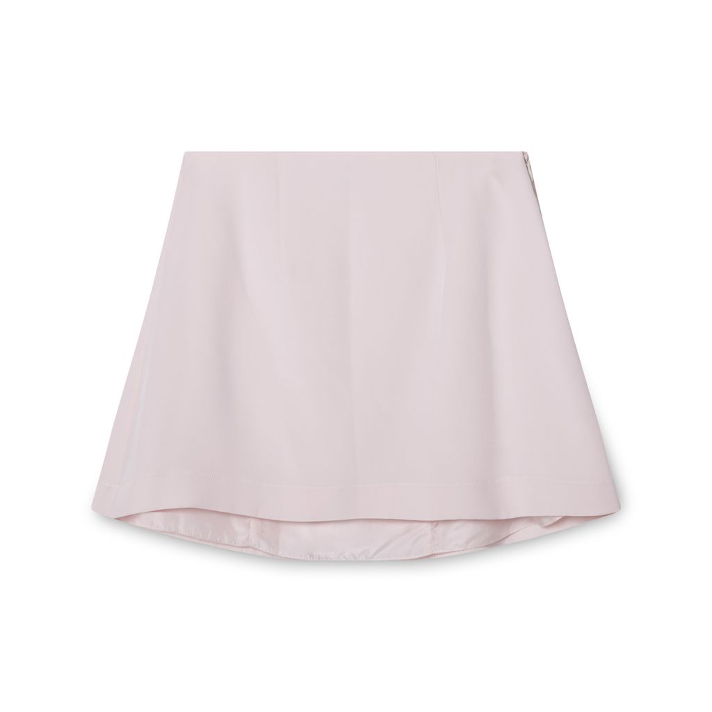 High Waist Mini Skirt in Peony Pink features outer 100% poly-dye lot may vary, lining 100% silk.