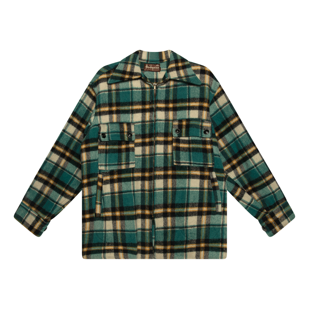 Hodgman Plaid Green Zip Up Jacket features and four front pockets.