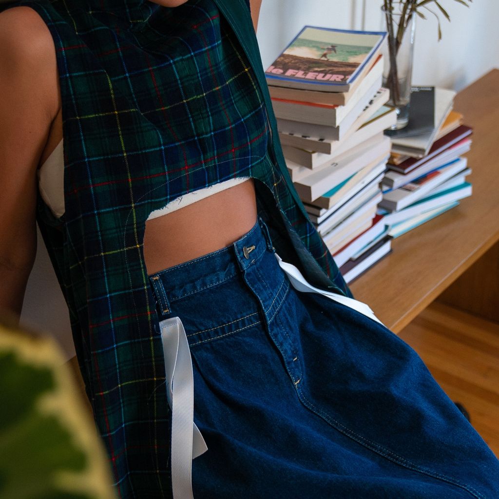 Experiments in upcycling. Androgynous, handmade 1x1s by Claire Casto.