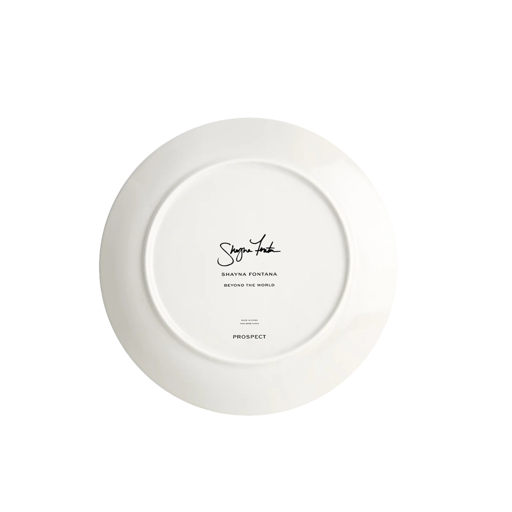 Chicago-born artist Shayna Fontana is a conceptual artist whose practice focuses on surrealist photography. Fontana quickly establishing a career shooting fashion editorials and advertisements in New York City with clients that include Gucci, Elle, and Harper’s Bazaar. Now based in Dallas, Fontana has become acclaimed for her perspective-shifting fine-art photography, using a singular point of view and fresh perspective to reimagine and reframe ordinary items—shoes, cherries, tennis rackets—into dynamic objects. Her collaboration with Prospect continues Fontana’s exploration of the boundaries at the intersection of art and the everyday. BEYOND THE WORLD SERIES In Fontana’s latest project, she combines her two favorite artistic expressions - her passion for the culinary and her immense talent in photography. With this collection of fine-bone porcelain plates and platters, Fontana challenges our notion of dining in a fantastical fashion, blurring the line between fact and fiction in the vein of Dalì and Oppenheim.
