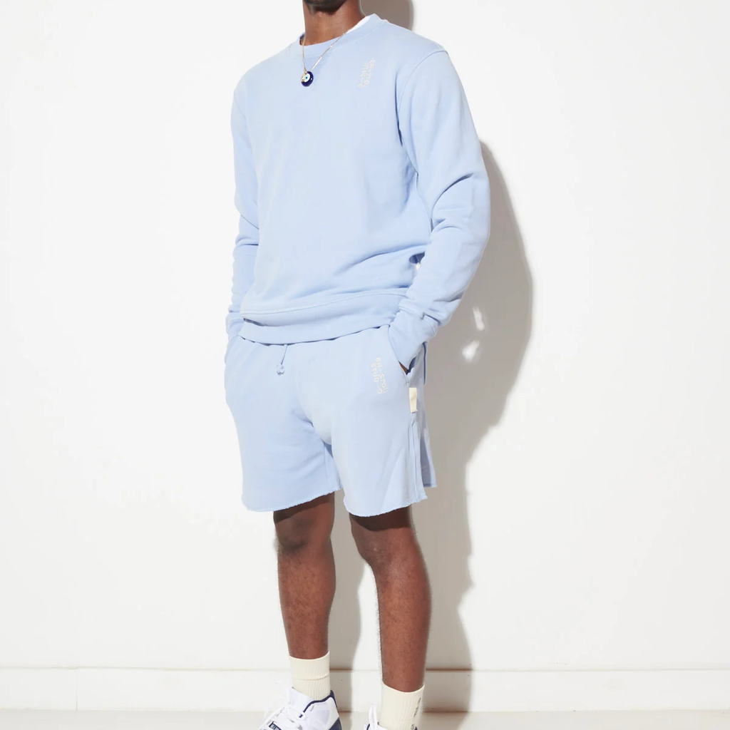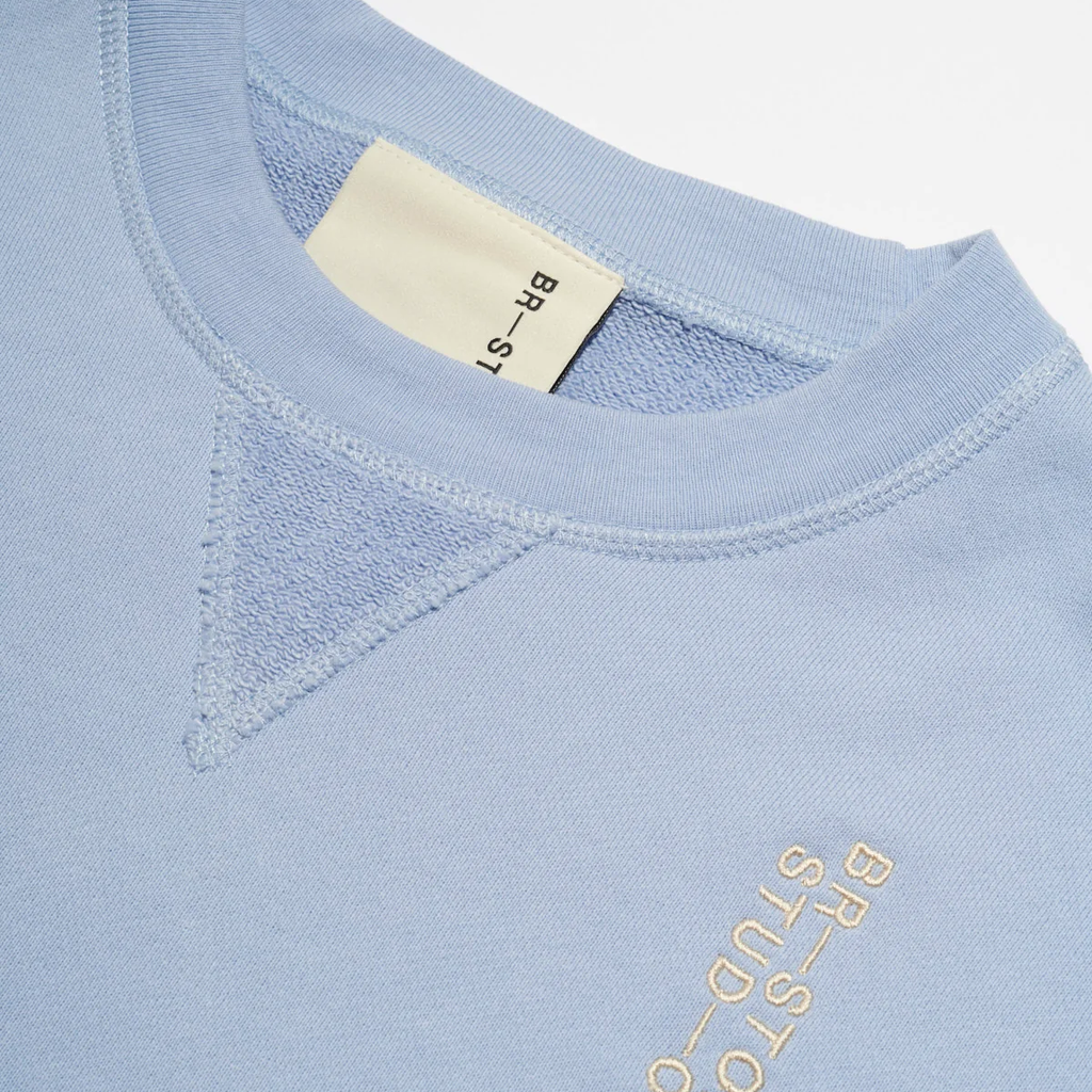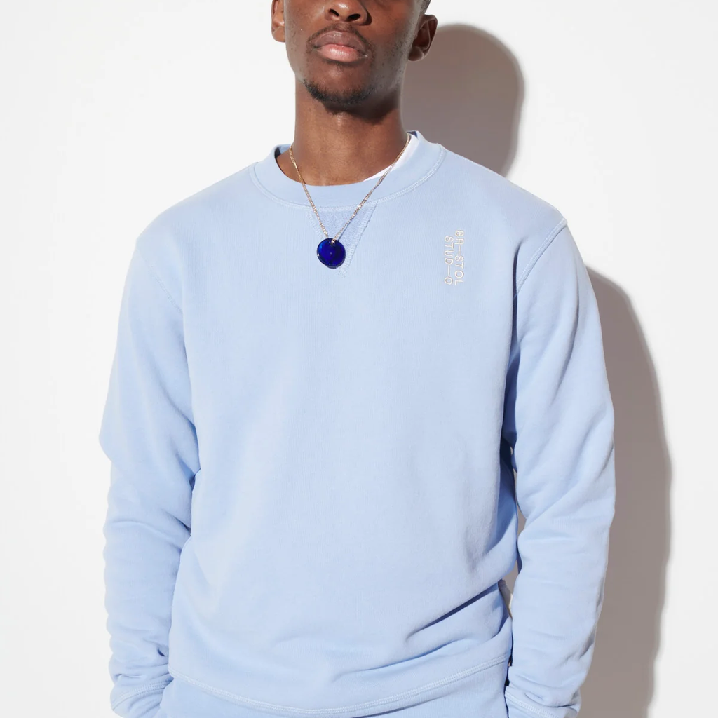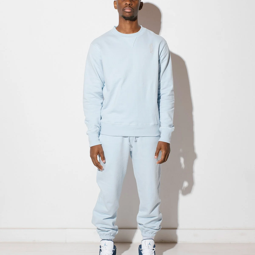 Home Team Crewneck features custom knit 18 oz. French Terry, twillback for an elevated feel, logo embroidery detail on chest, signature Japanese grosgrain tab at left side seam, and slightly oversized fit. Made in Los Angeles.