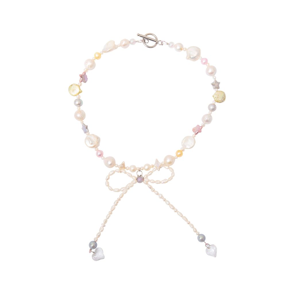 Freshwater pearls and glass.