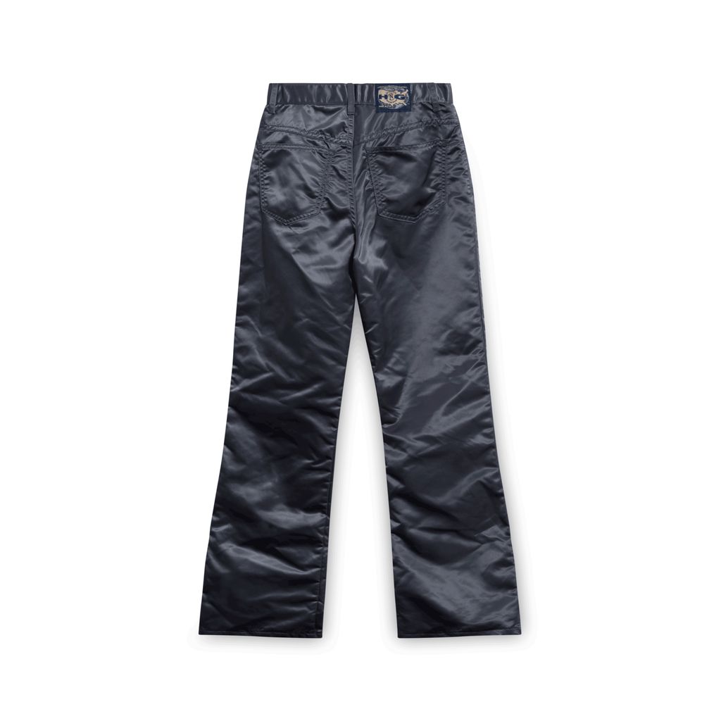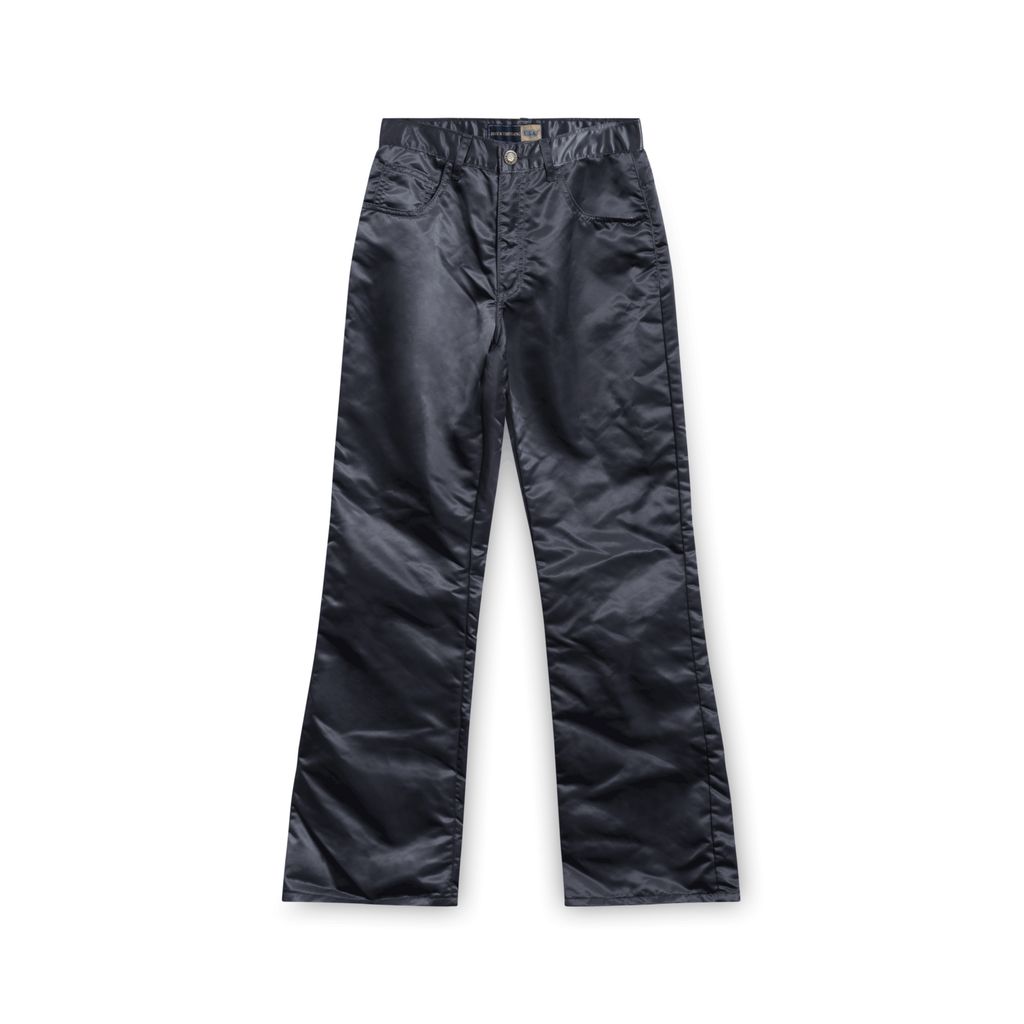 This pair of pants from Hot & The Gang has a smooth and shiny dark grey finish sure to heat up your summer nights. Includes silver metal zipper and button closure, with pockets on the front and back.