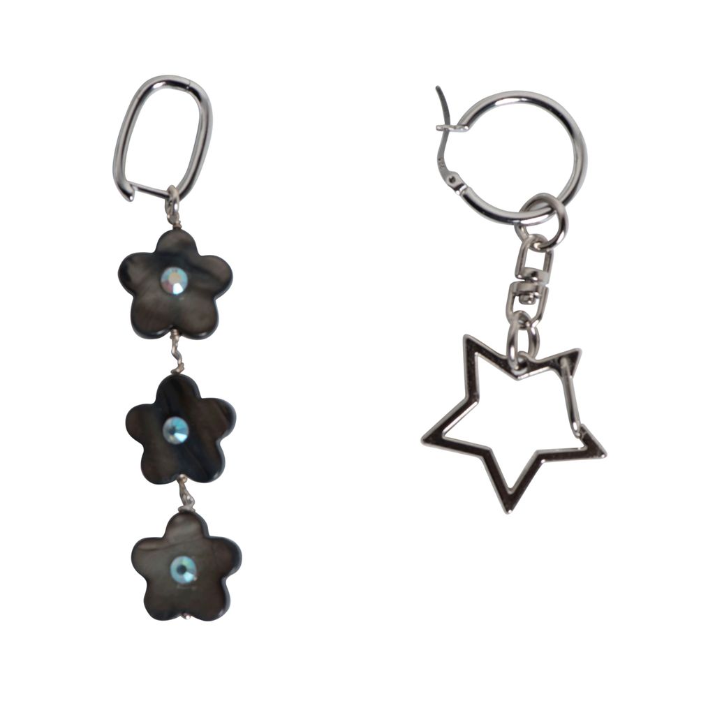Hot Topic Earrings are mismatched earrings on sterling silver hoops.