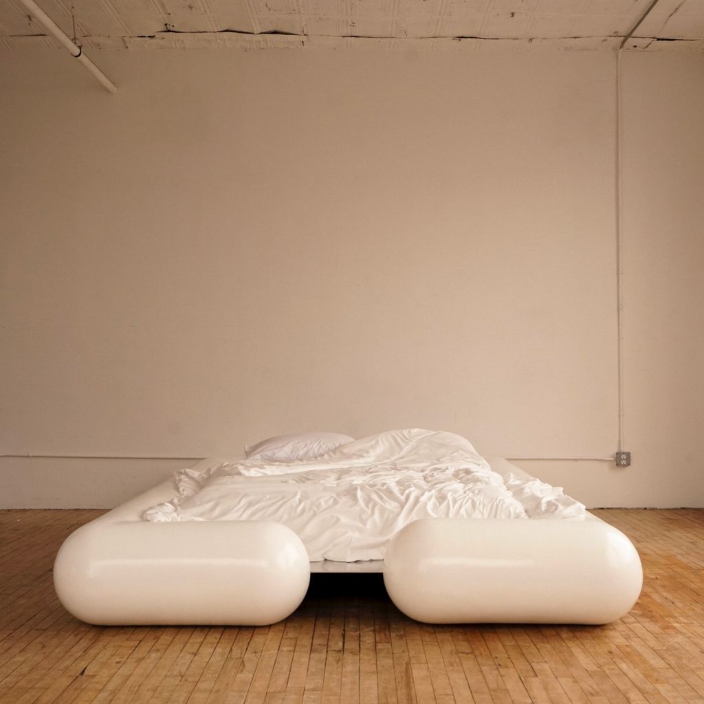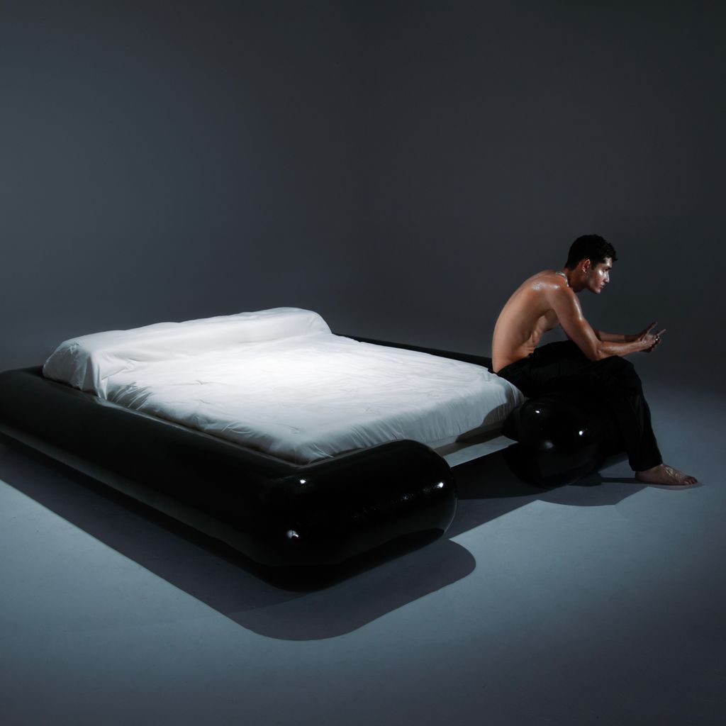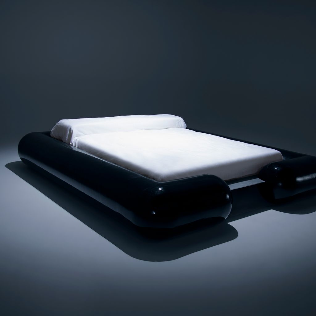 A sanctuary of sensuality, the Hug Bed boasts a voluptuous form that is both indulgent and sophisticated. Its glossy curves are bound to elevate and bring a touch of hedonism back to the bedroom. Made with a low-rise, chunky design, a high-gloss fiberglass frame, and a sleek floating aluminum sheet.
