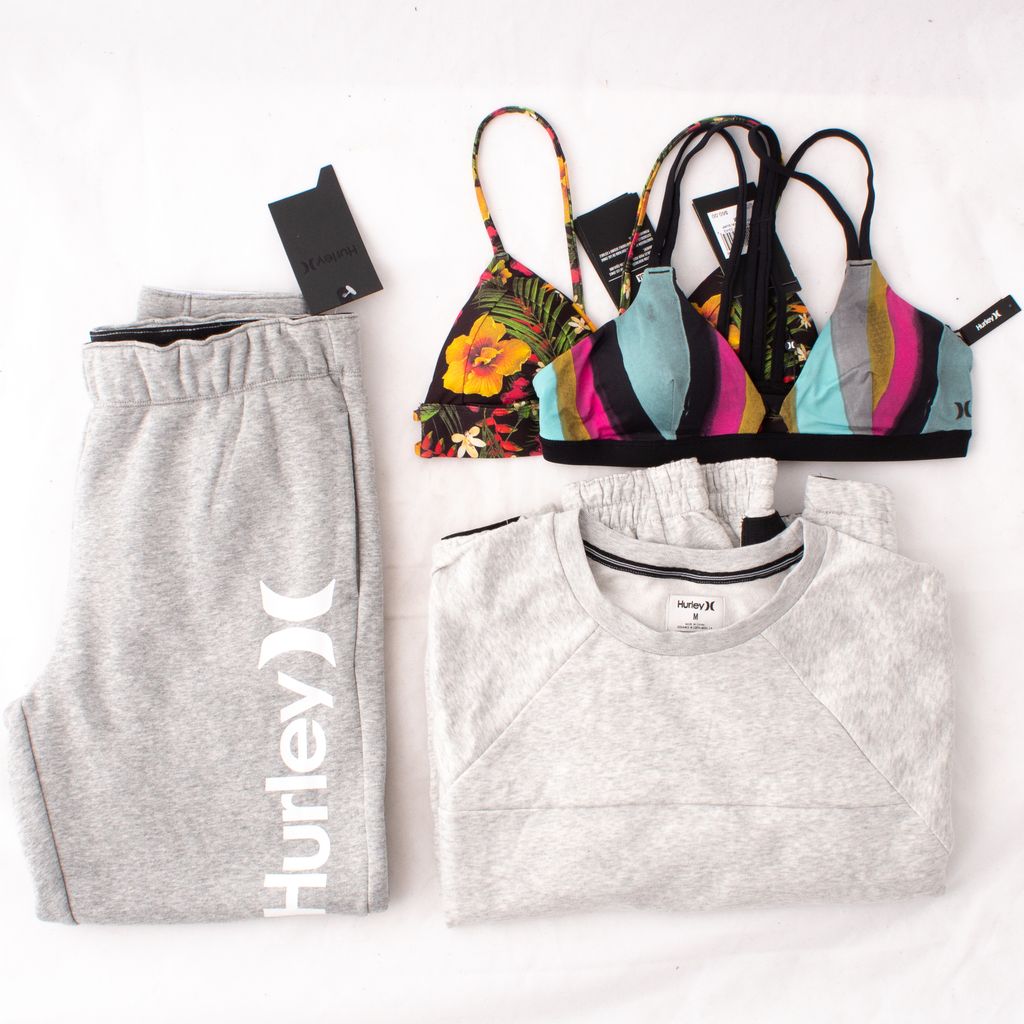 This Hurley backpack is filled with Hurley women's swimwear and clothing, all handpicked by pro surfer Steffi Kerson herself! Items included but not limited to: two bikinis, sweatshirt & sweatpants, and a backpack. One-of-one item, exclusive to Basic Space! 100% of the proceeds go to the Surfrider Foundation towards ocean conservation. All items are brand new with tags attached.