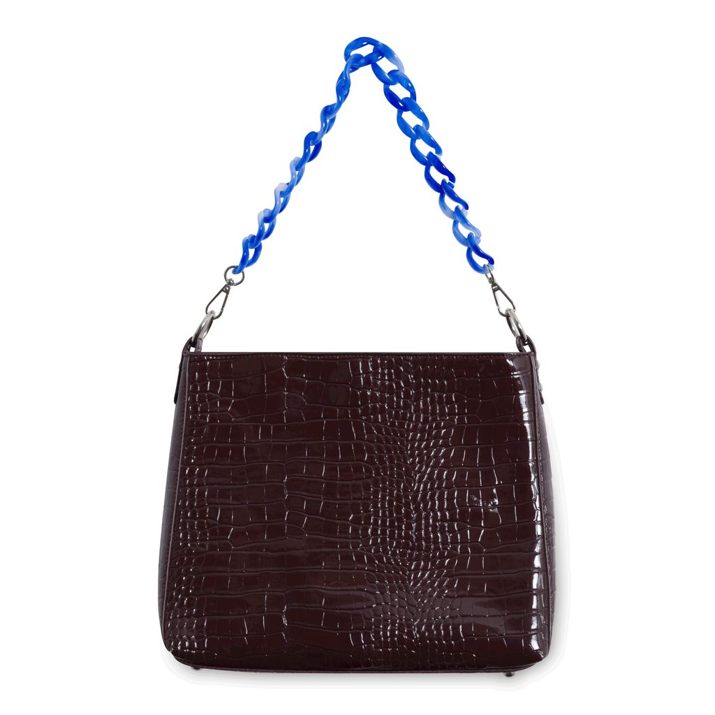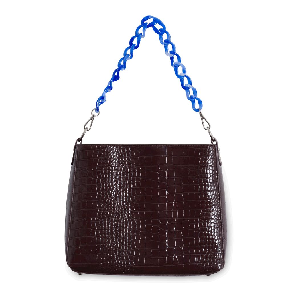 Hvisk Vegan Croc Tote with Marble Handle in Brown features removable handles.
