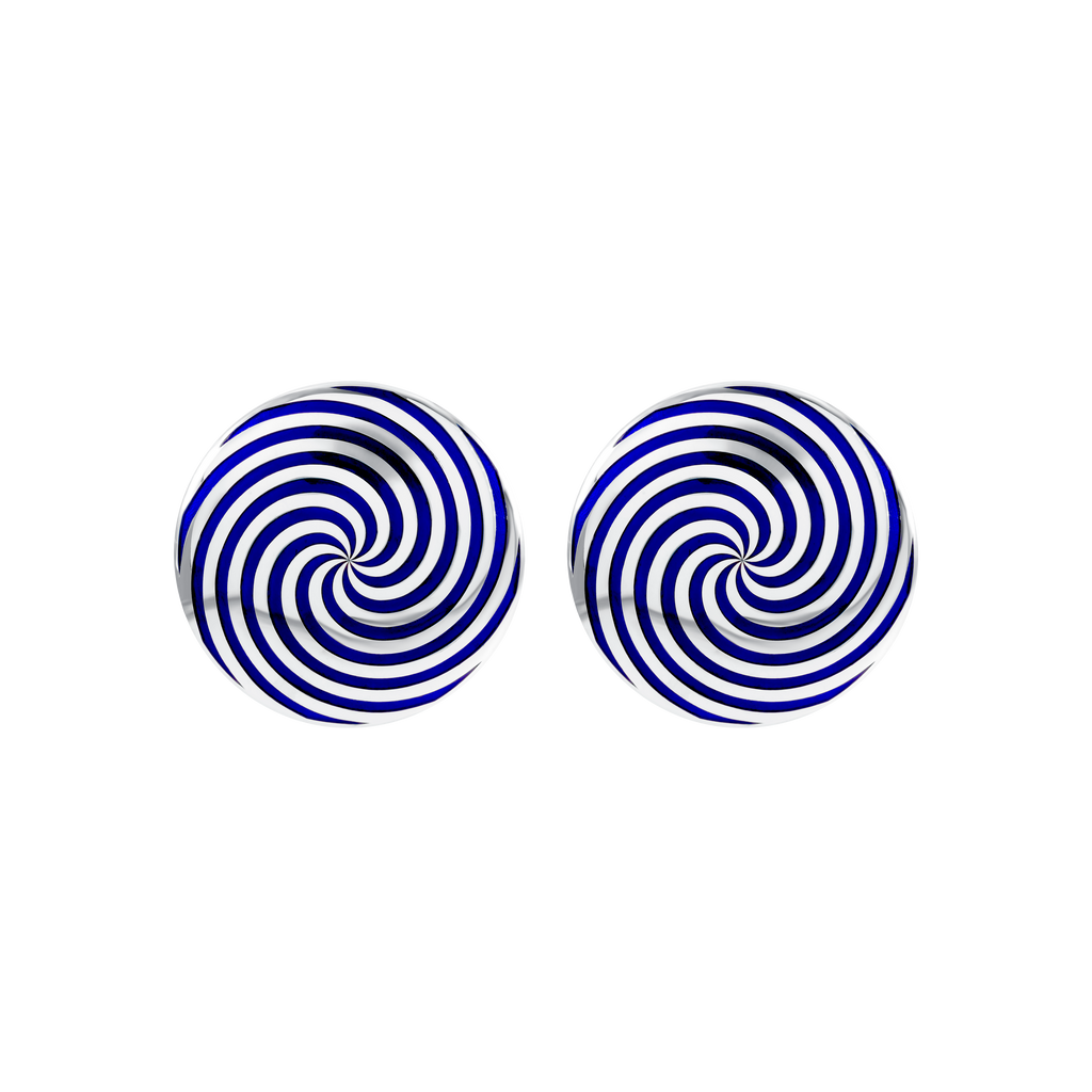 A hypnotizing and playful statement earring. 925 Sterling Silver, Royal blue enamel filled
