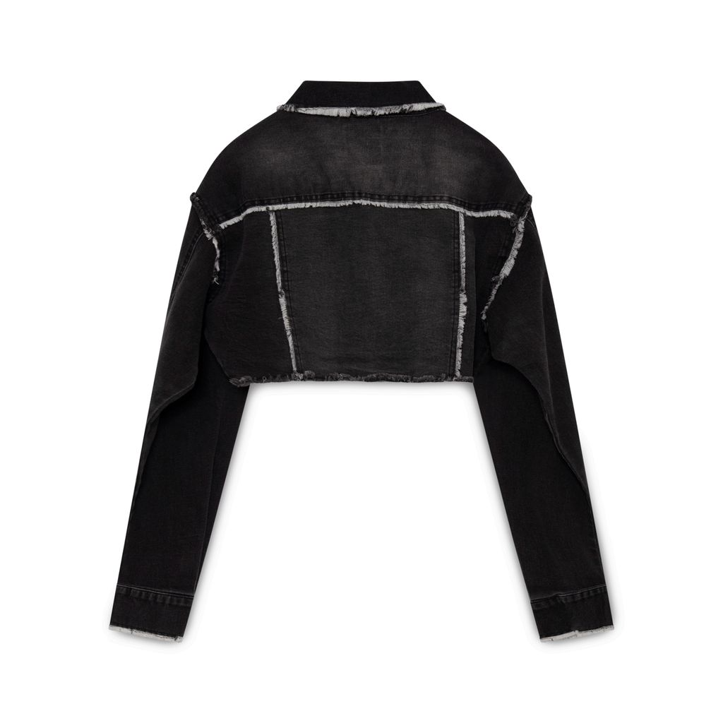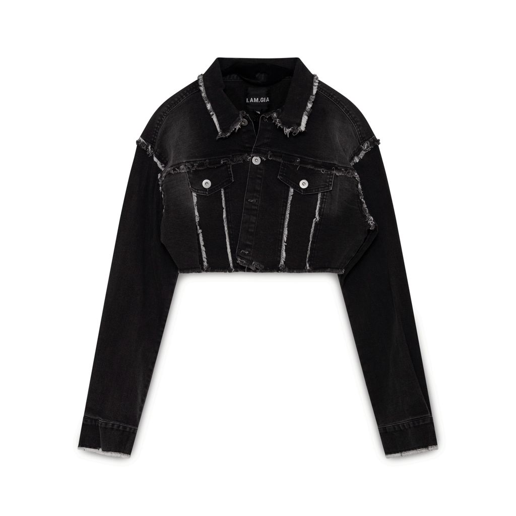 I Am Gia Cropped Denim Jacket features button up closure, two chest pockets.