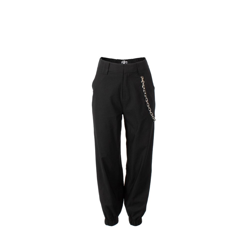 These early 90's inspired joggers from Aussie brand I.AM.GIA are a much sought after item loved by E-Girls worldwide. Features high rise waist, elastic cuffs at ankles, relaxed fit through legs, detachable chain, elastic at back waist, and slide and zip closure at waist.