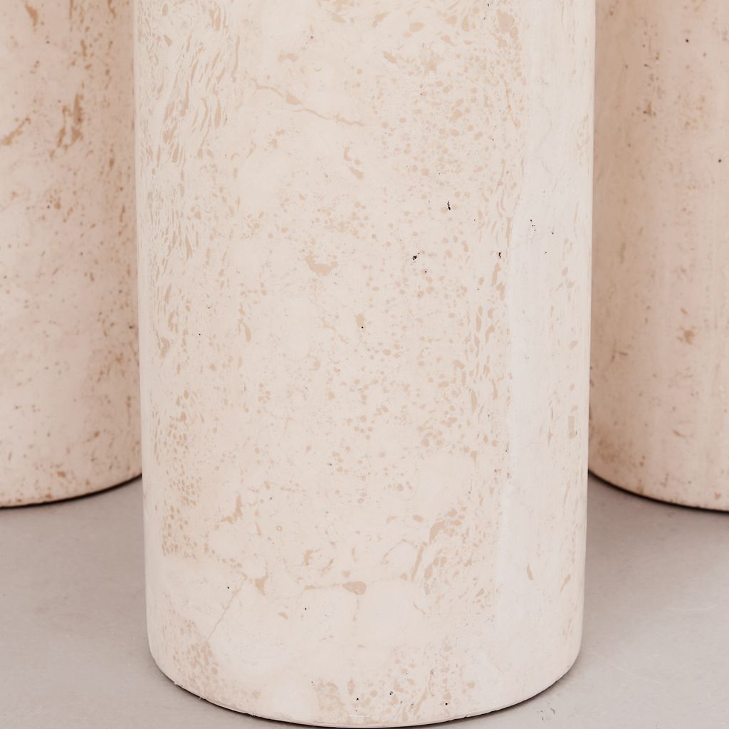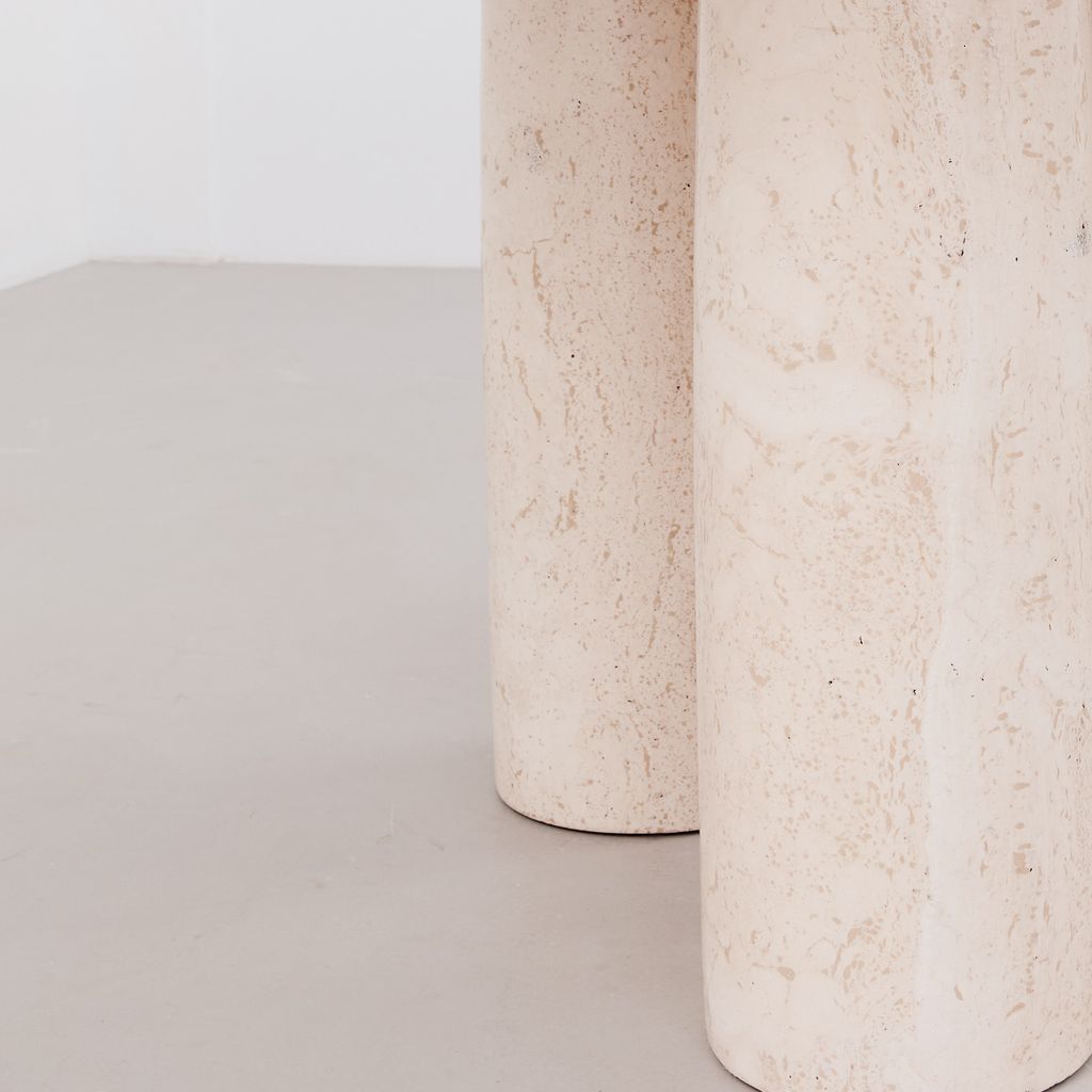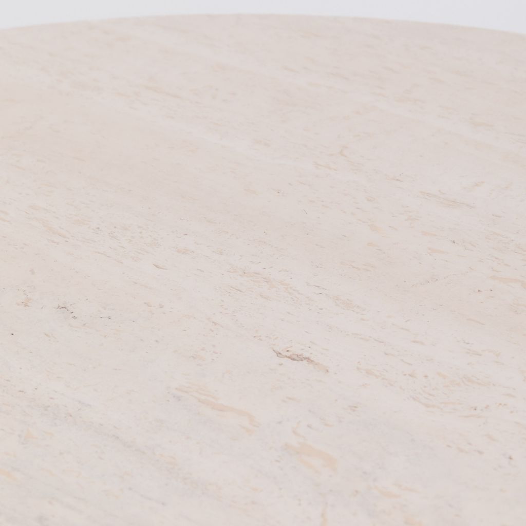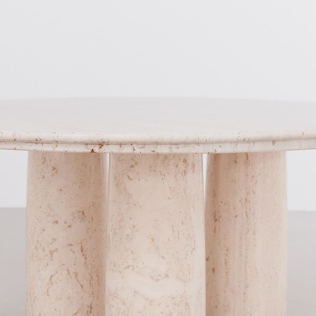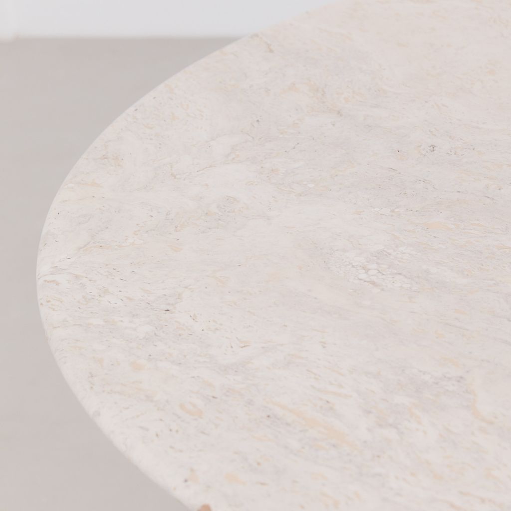 The classic Il Colonnato dining table by Mario Bellini for Cassina. Designed in 1977, this collectible design features the distinctive tapered column legs in cream toned travertine, with soft polished finish.