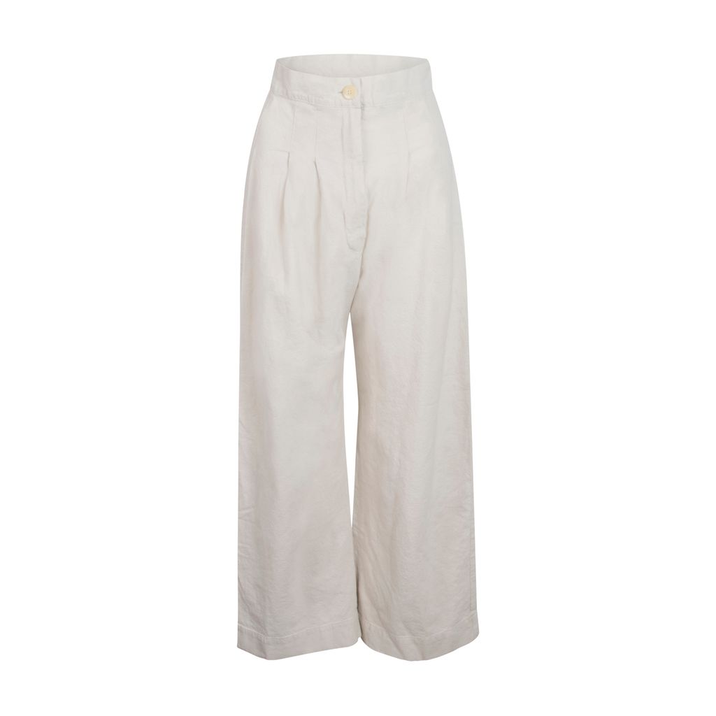These Ilana Kohn classic Boyd Pants are made from sturdy, cotton canvas and feature a high-waisted pleated silhouette with a front button and fly closure. Gently worn, no pockets or signs of damage.