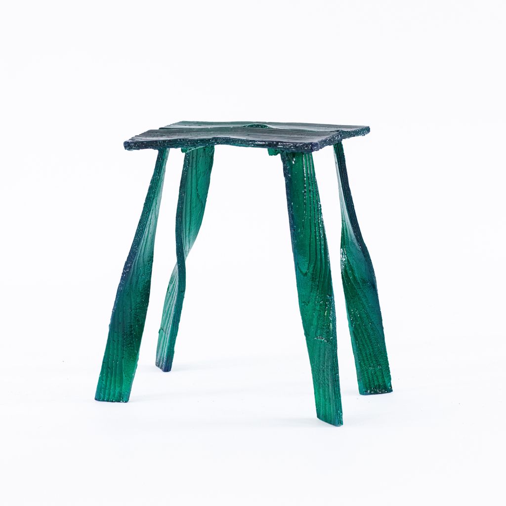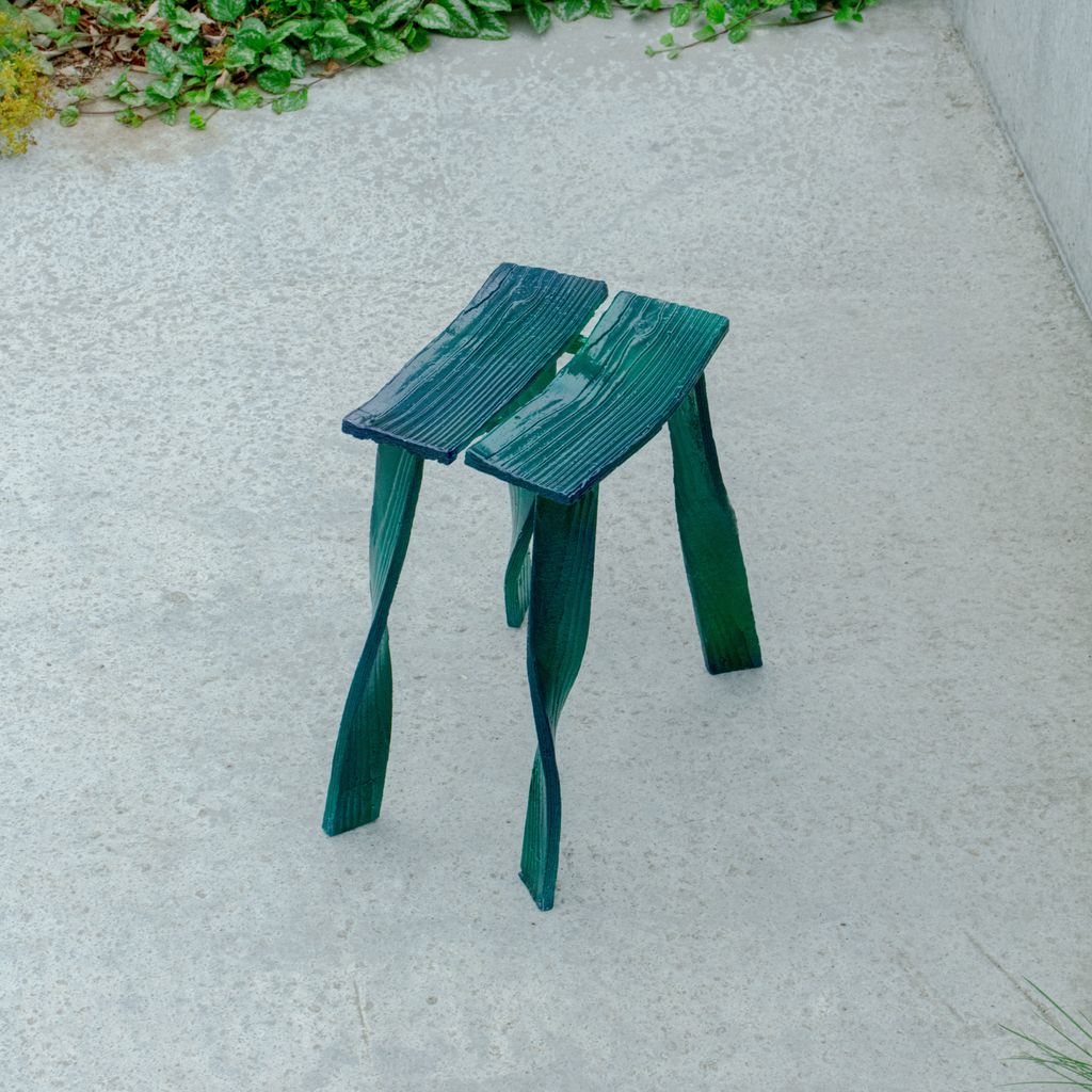 Illusion Green Stool, 2022 is a study of the physical laws and distortions stored in our bodily as well as our perceptual experiences.