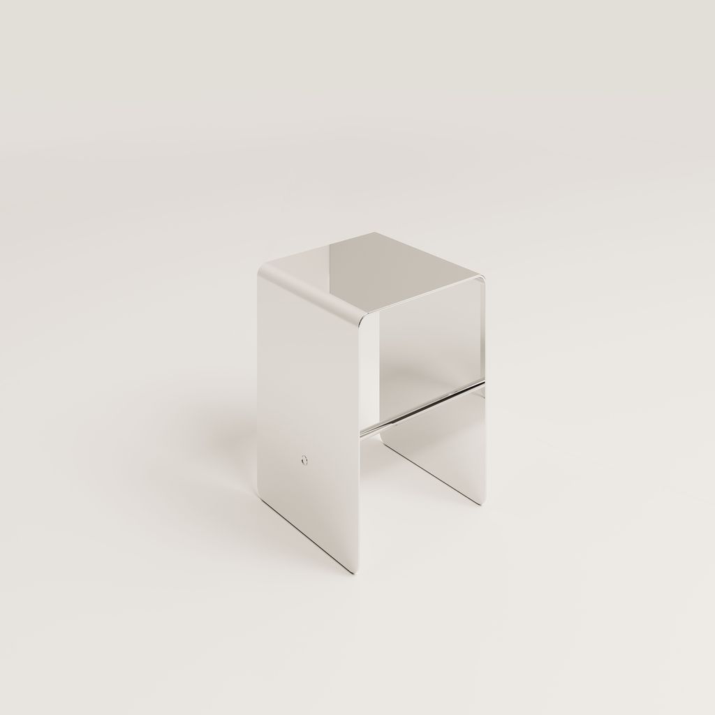 The Imaginary Object stool is no ordinary seating; its reflective surface captures and mirrors the environment around it, creating a mesmerizing visual effect. It can also be used as a side table.Lead Time: 6 weeks