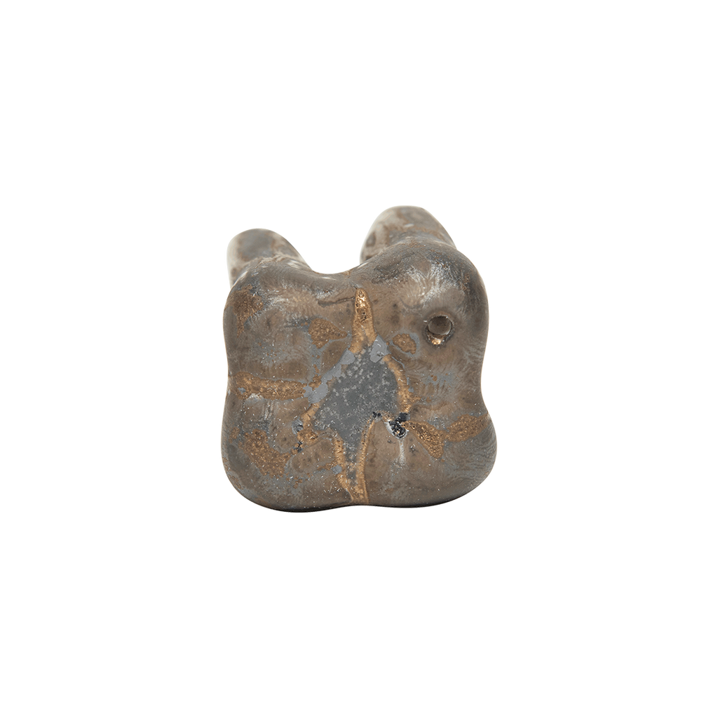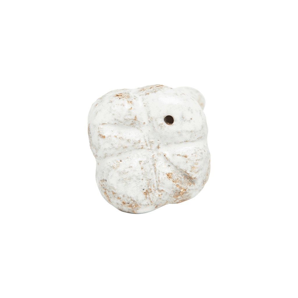 Hand-pinched and carved stoneware incense holder with matte and glossy glazes.