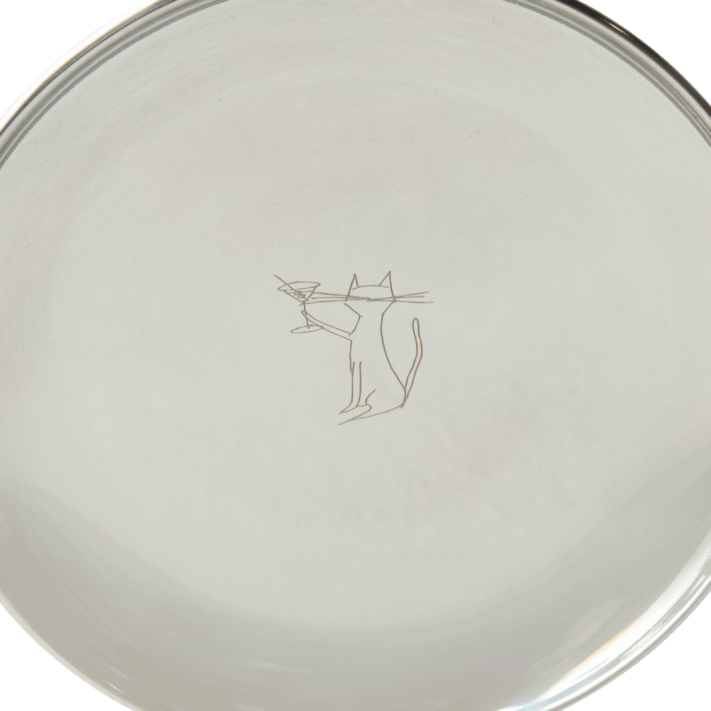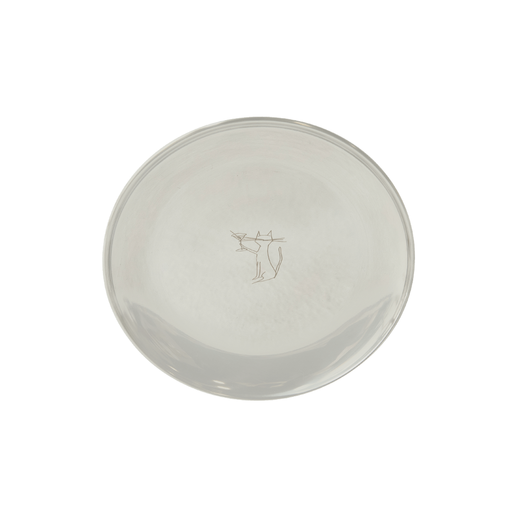 Features engraved original cat martini drawing by lazy jamie founder Jamie Lenore McKillop. Suitable as appetizer, bread and butter, or dessert plate.