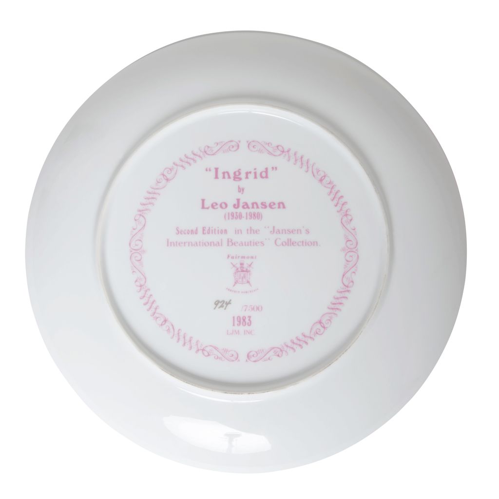 Leo Jansen's portrait of Ingrid from Jansen's International Beauties Collection is a 1983 Collector's Plate on Fairmont Fine China.
