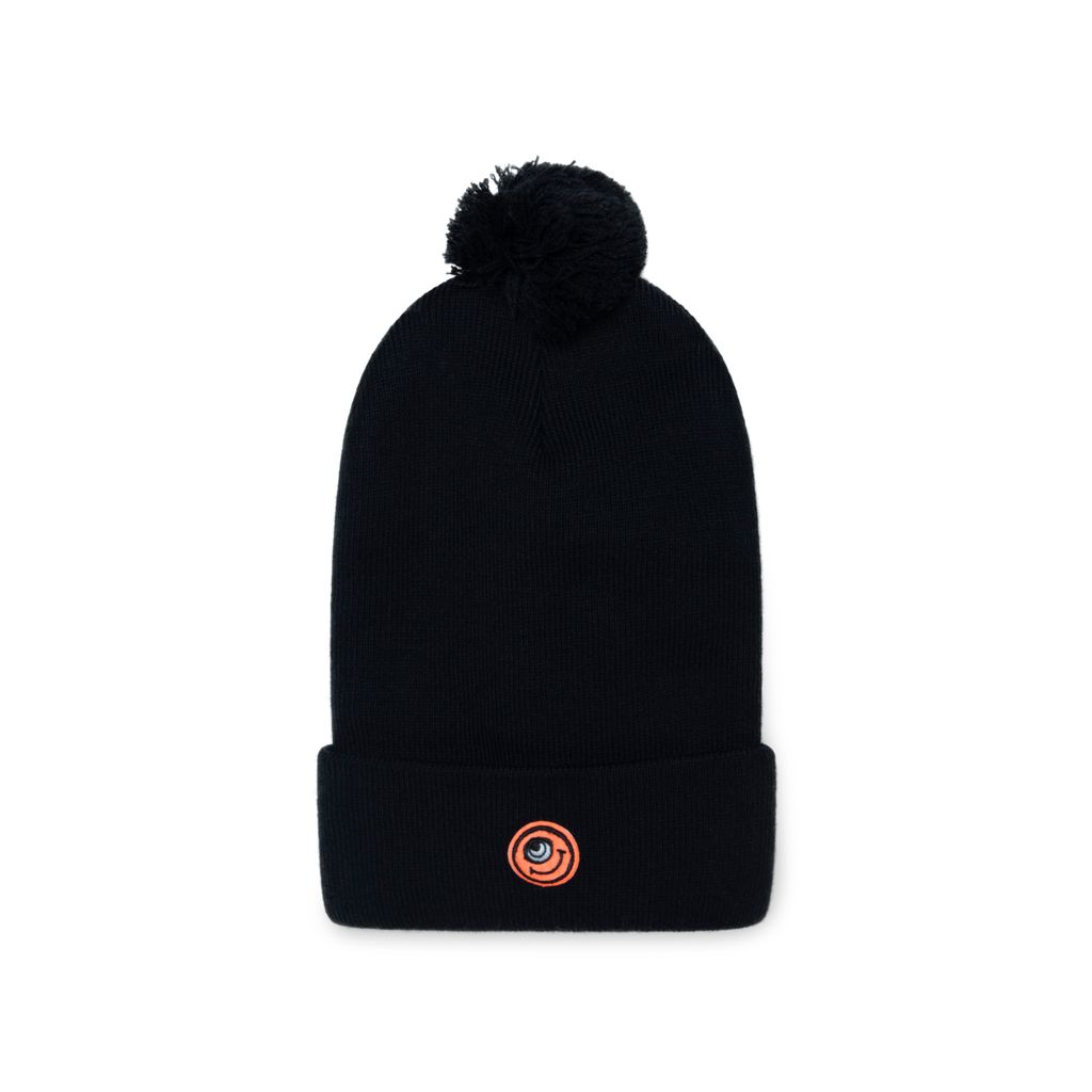 Insomniac One Eye Beanie feature embroidery, pom pom on top, thick rib material.
