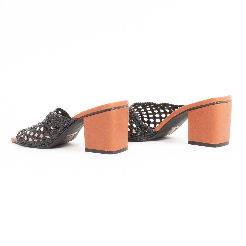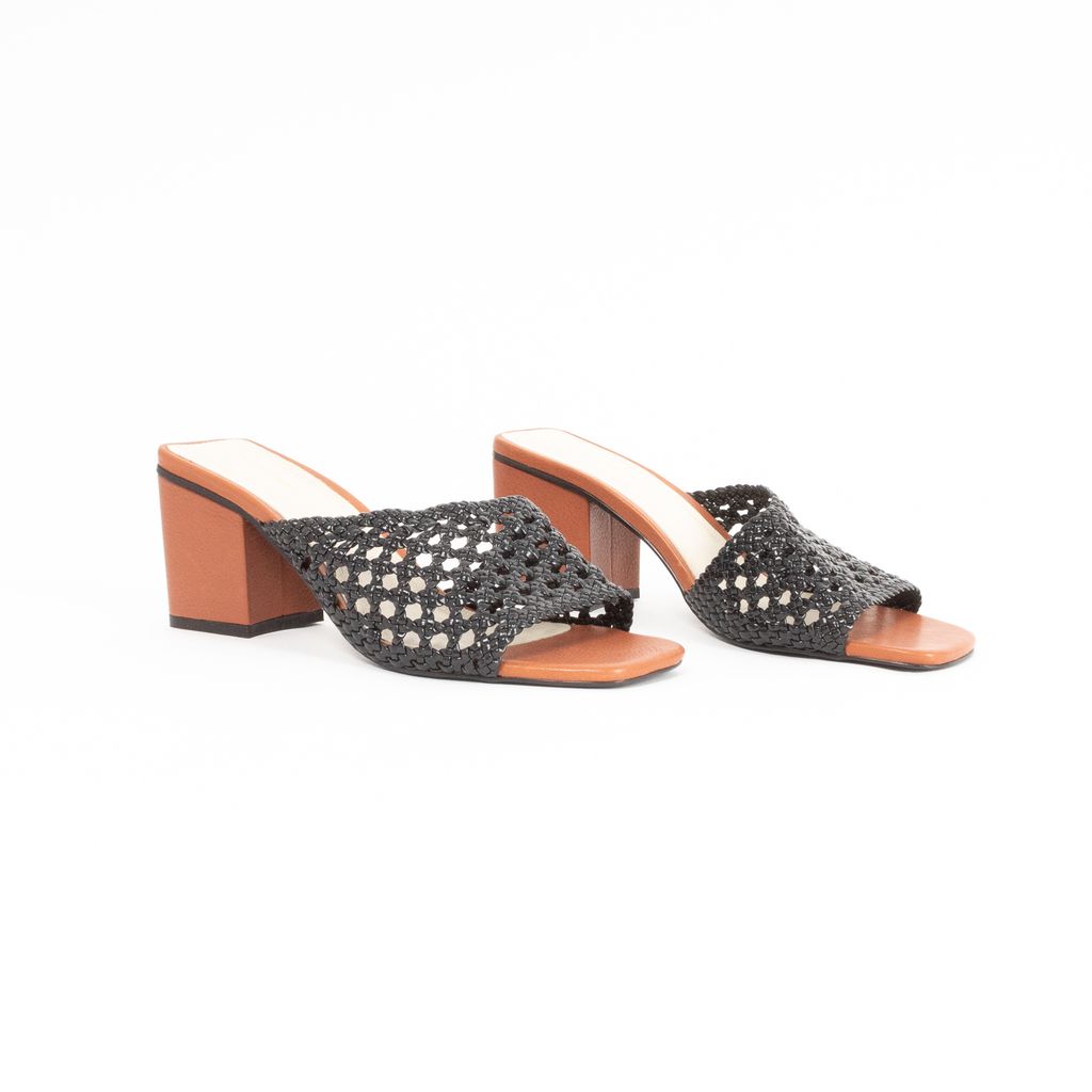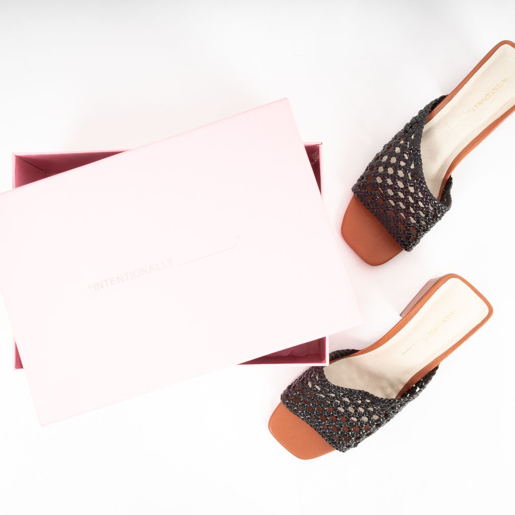 Modern and chic, these leather mules from Intentionally Blank will take you all over town effortlessly. Features woven top strap, leather body fabrication, and 3" heel height.