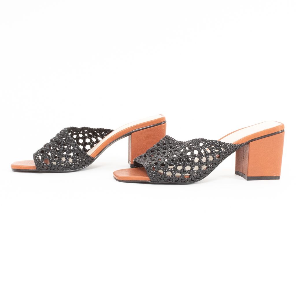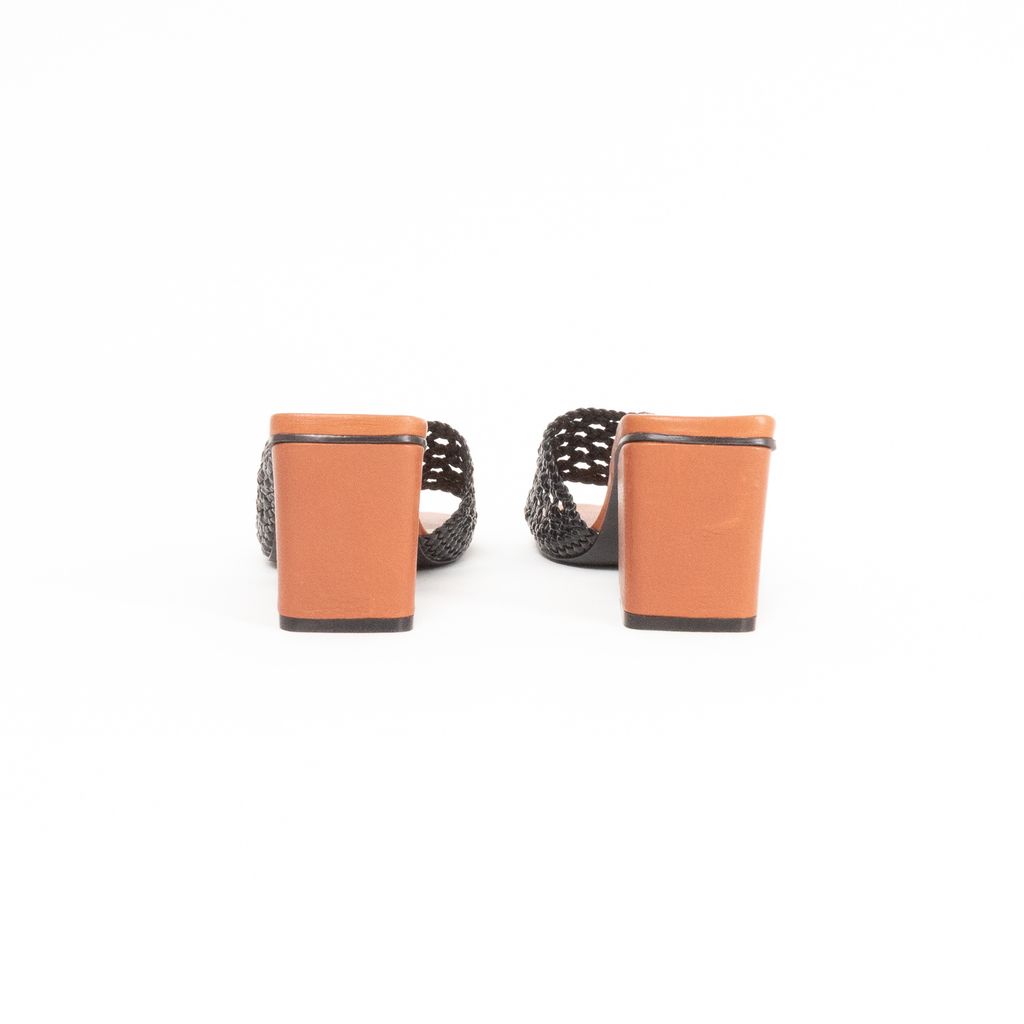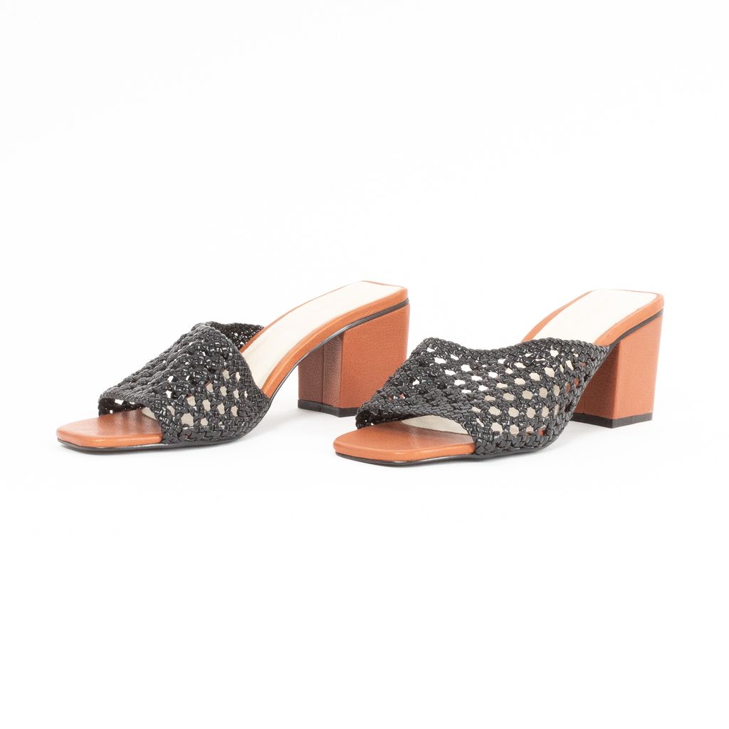 Modern and chic, these leather mules from Intentionally Blank will take you all over town effortlessly. Features woven top strap, leather body fabrication, and 3" heel height.
