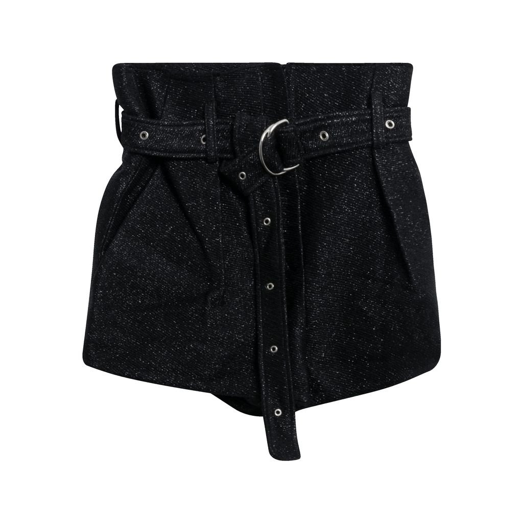 Like new, black "Chopan" shorts from Iro. Featuring belt loops, belted waistband, a glittering effect and one back pocket with two side pockets. 56% Acrylic, 26% Cotton, 12% Viscose, 6% Polyester