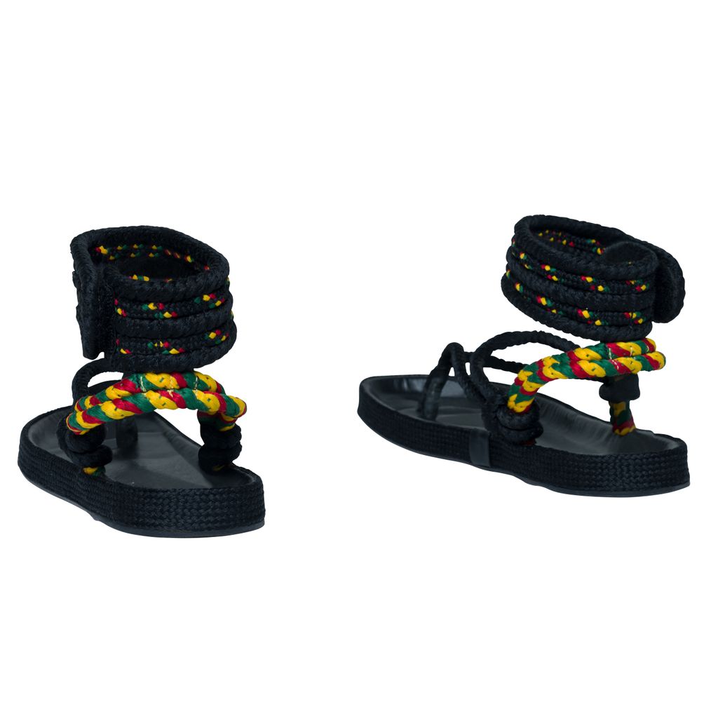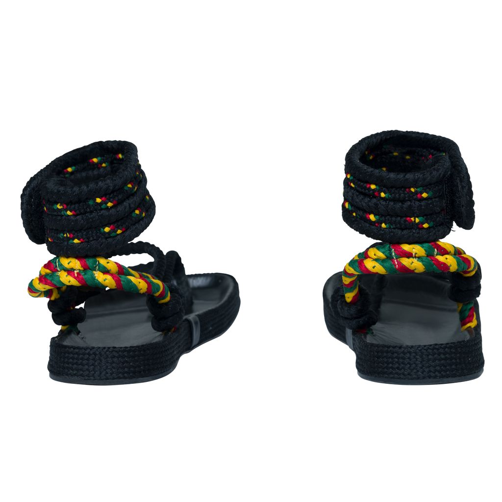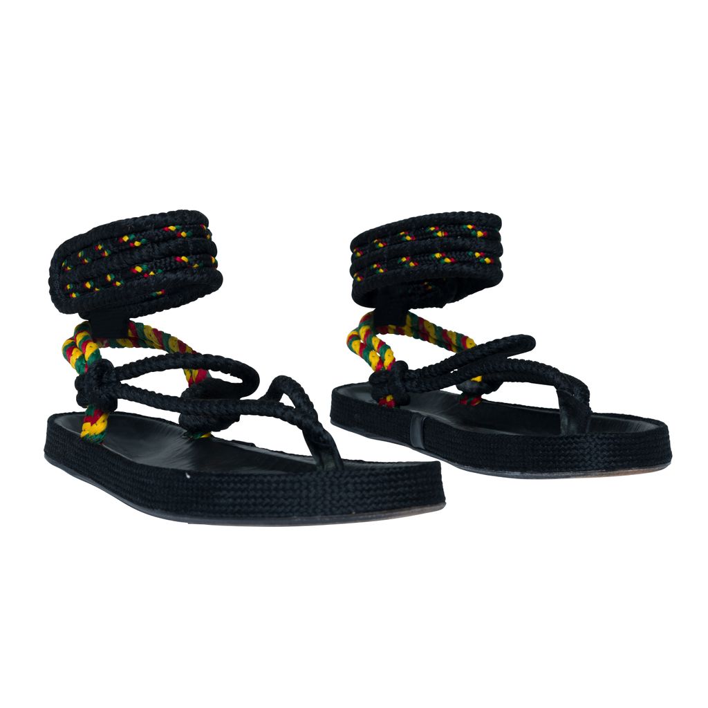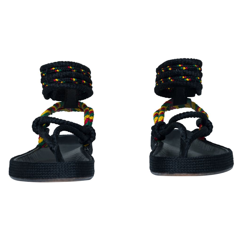Isabel Marant Etoile Multicolor Rope Sandals feature thong strap, rope covered vamp, grip strap ankle wrap with velcro, and leather lining and sole.