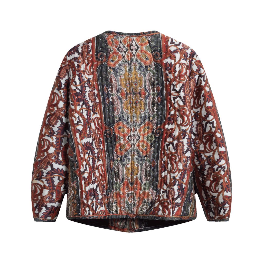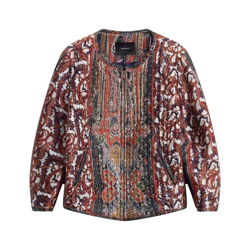 Be a walking Turkish Delight in this crazy cool bomber from Isabel Marant. Features fabric bound hems and cuffs, full zip front closure, front pockets, and unique Isabel Marant designed paisley-esque pattern.