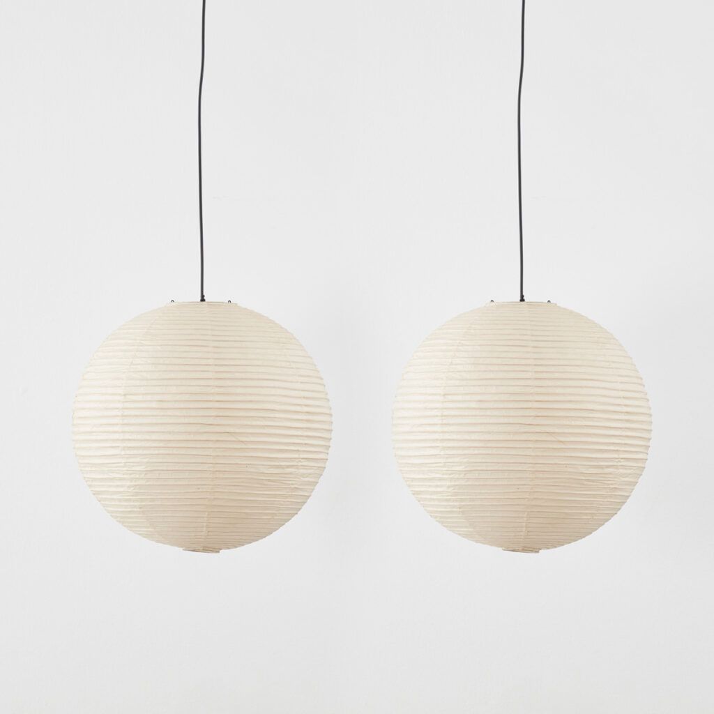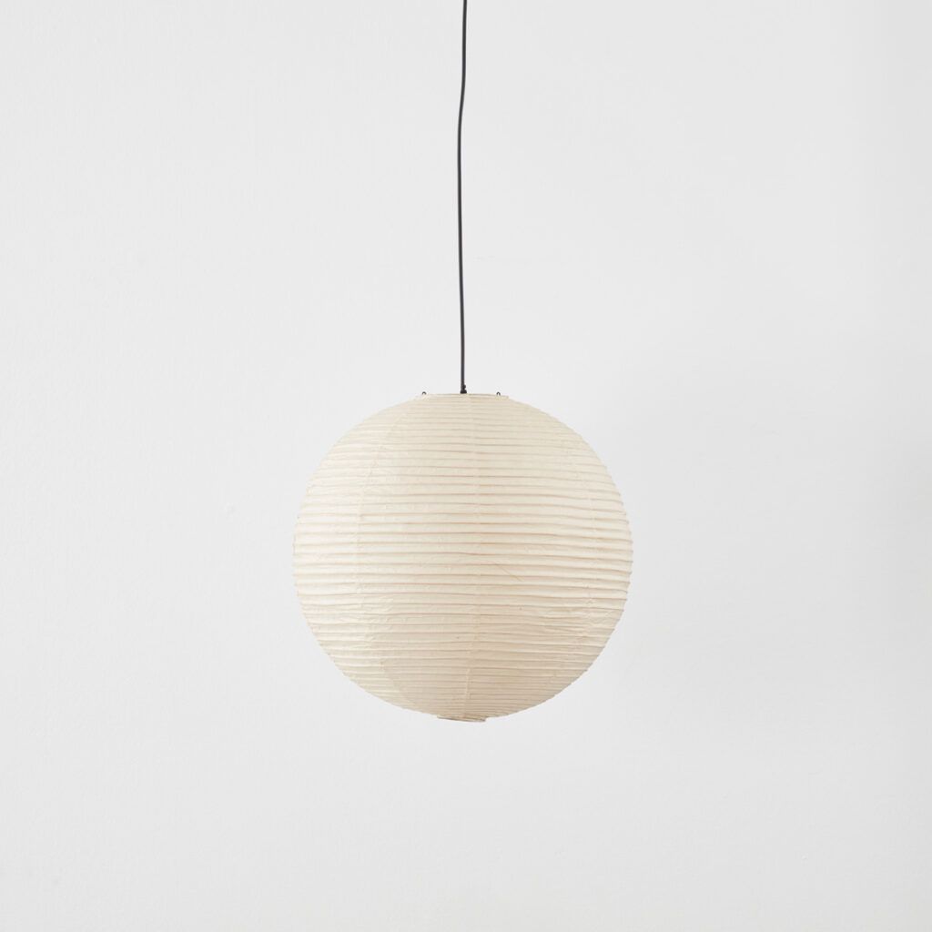 Isamu Noguchi (1904 – 1988) was an artist, furniture designer, ceramicist, theatre designer and landscape architect. In 1951, he began designing Akari Light Sculptures – 100 of them – to reinvigorate the flailing craft of lantern making in Ozeki. Akari means ‘light’ in Japanese, suggesting luminous and weightless. Noguchi said of the series: “The harshness of electricity is… transformed through the magic of paper back to the light of our origin – the sun – so that its warmth may continue to fill our rooms at night.”