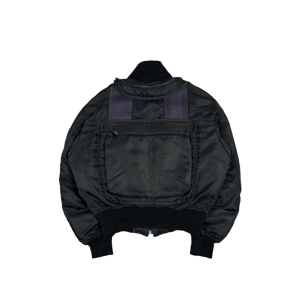 This fan-titled “Cargo Flight Jacket” that hailed from this collection is arguably the most sought after piece not only from this season, but the Japanese designer’s oeuvre at large. Miyake referenced the semblance of a western military issue MA-1 bomber jacket, however he expanded the silhouette to have a boxier drape and embellished the garment with a series of infamous modular pockets.