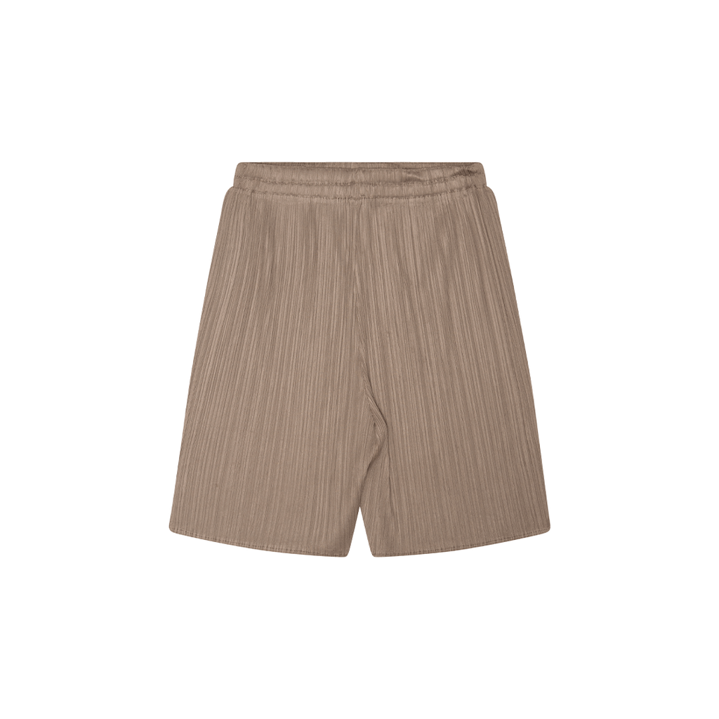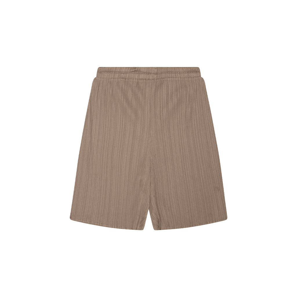Issey Miyake Beige Pleats Please Shorts features elasticated waist and classic pleated design.