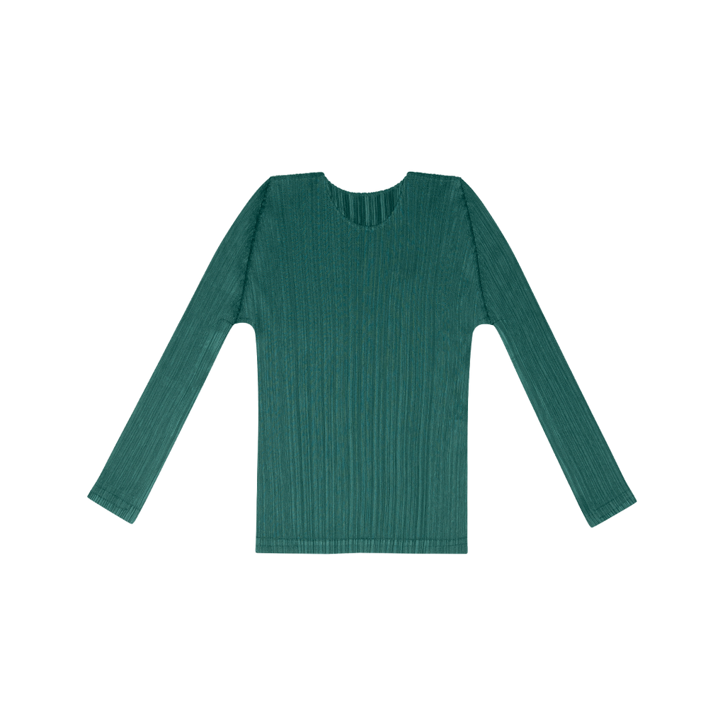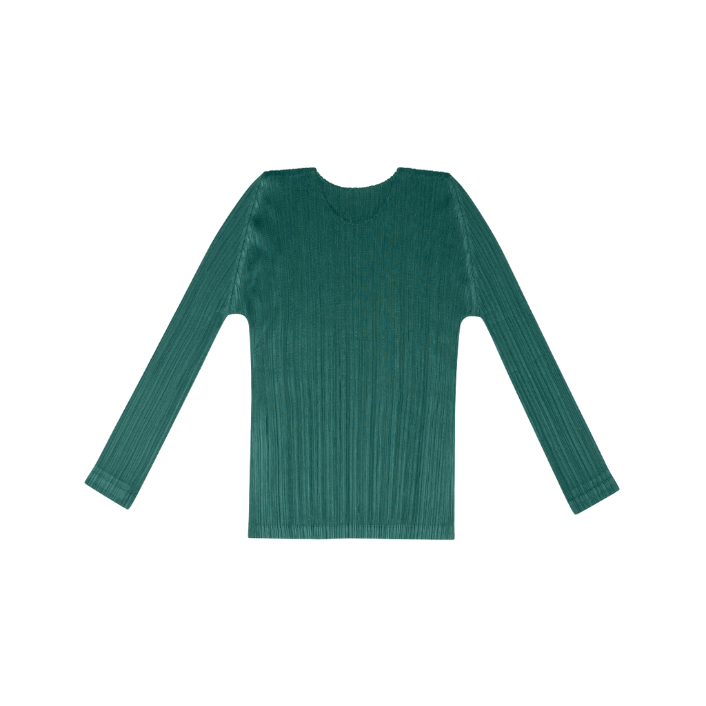Issey Miyake Green Pleats Please Top features long sleeve and round neckline.