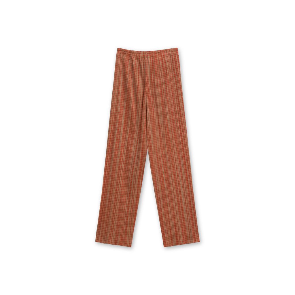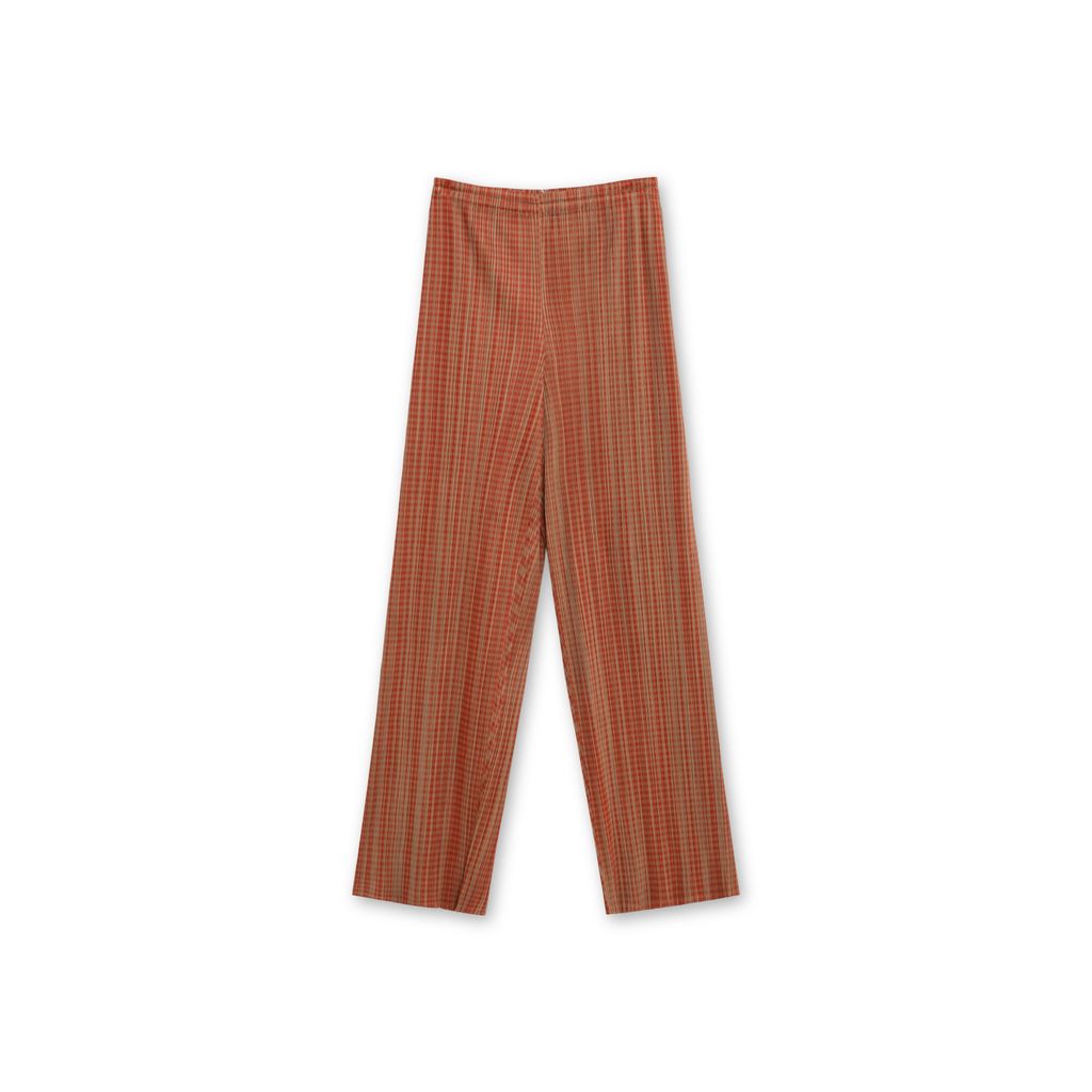 Issey Miyake Plaid Pleated Pants features pleated material, elastic waistband.