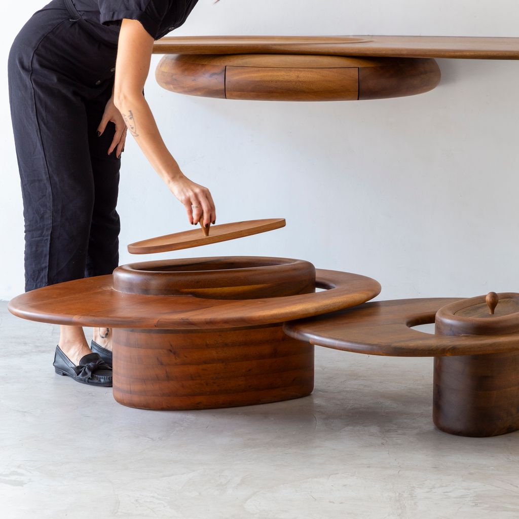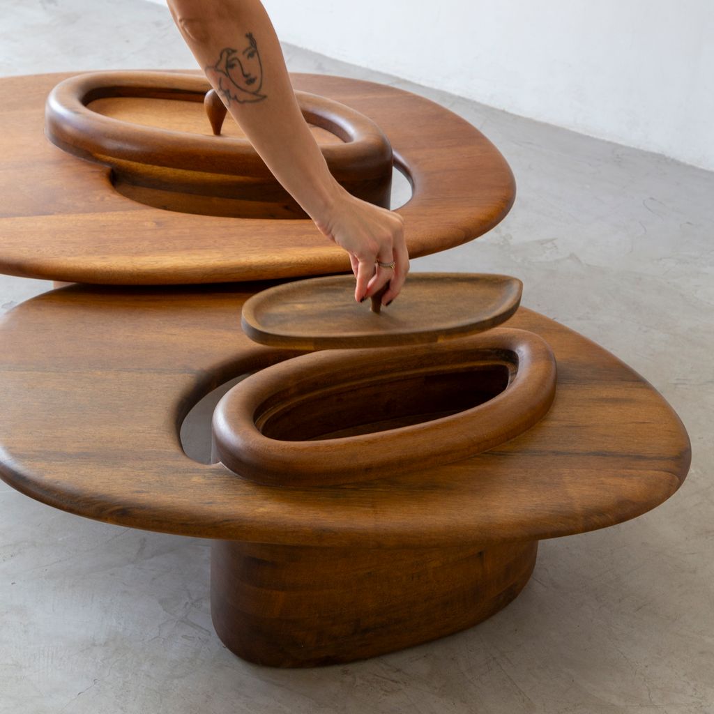 The ITA Collection, inspired by Brazilian coastal stones, takes its name from Tupy-Guarani, where “ita” means “stone.” The two fluid-shaped coffee tables, featuring a small central chest, evoke sentimental memories of the coast. Sculpted with smooth, organic edges, the pieces convey the sensation of being shaped by waves, rain, and time, bringing the natural poetry of the Brazilian coastline into the home.