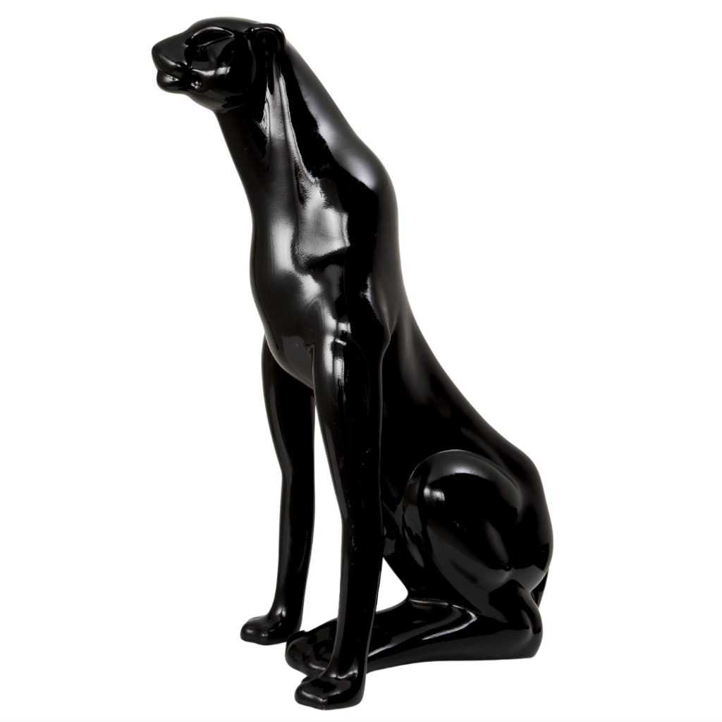 A striking example of 1980s Italian decorative art, this black panther sculpture captures dynamic movement and bold elegance in equal measure. Crafted with meticulous attention to form and surface, the panther's sleek silhouette and glossy black finish reflect the era’s fascination with glamour, power, and statement décor.
