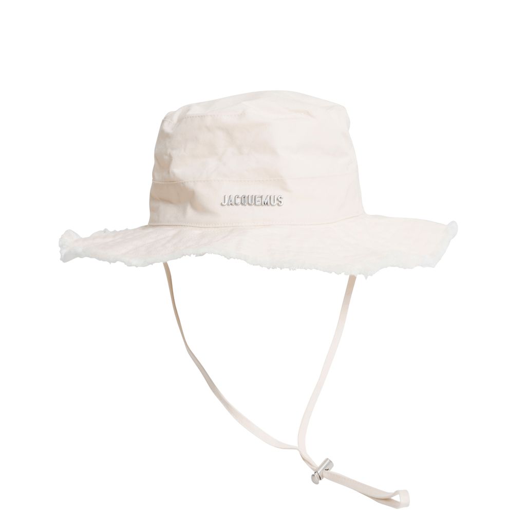 Get ready to explore the world with this cotton Le bob Artichaut bucket hat from Jacquemus. Made with a super comfortable fit and a versatile beige colour, this piece will instantly add a cool vibe to any look. Put it on! Featuring a front logo plaque, a drawstring fastening, a rounded shape and a fringed hem.
