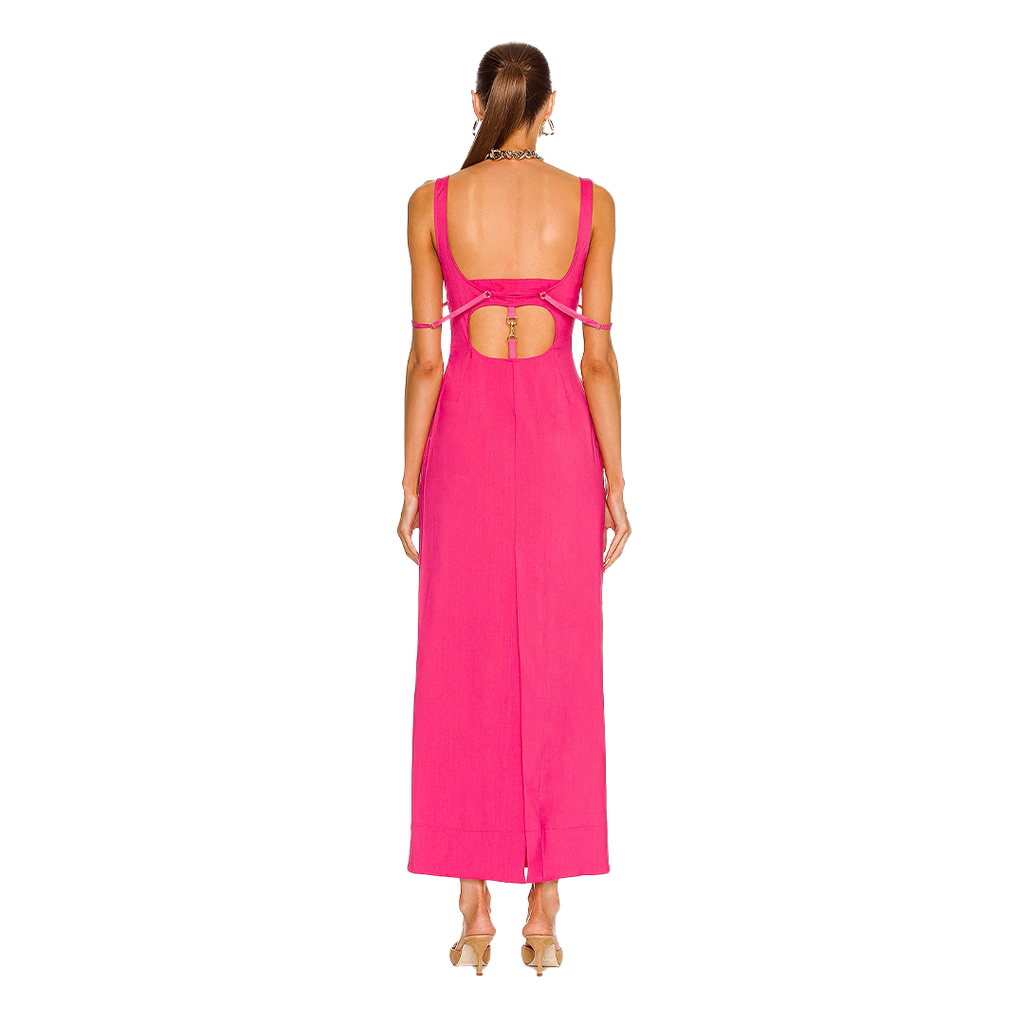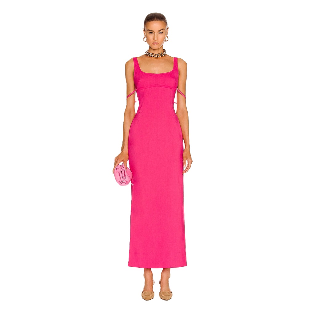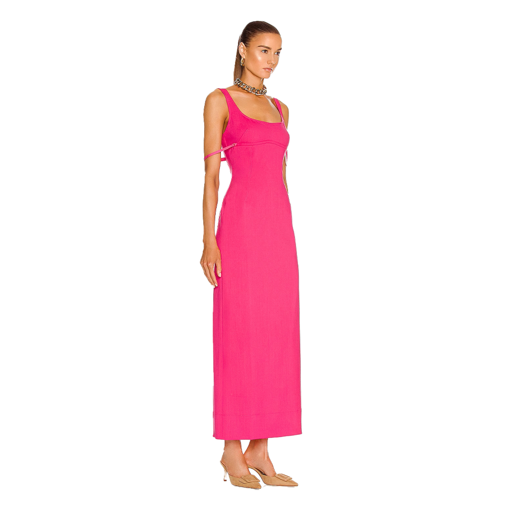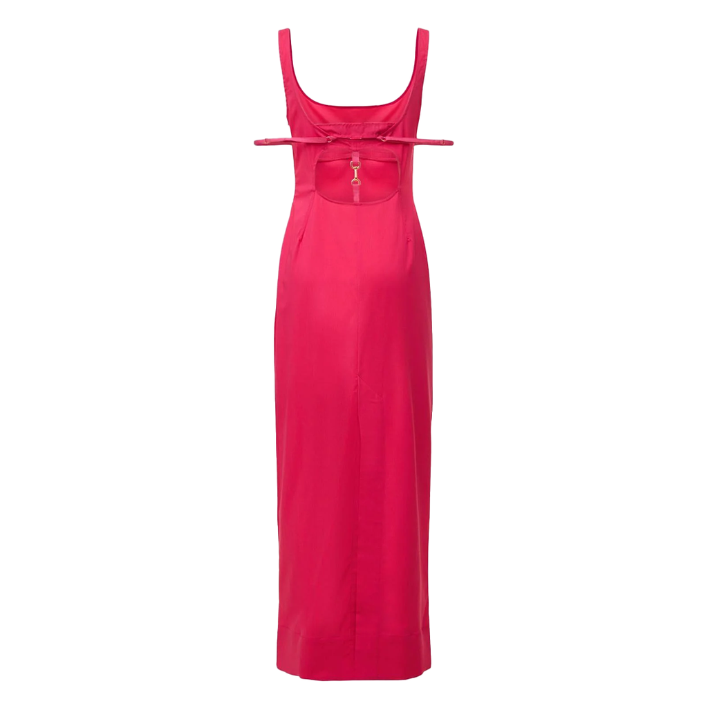 JACQUEMUS La Robe Valdu Dress features hidden side zipper closure, back cutout, adjustable draped straps.