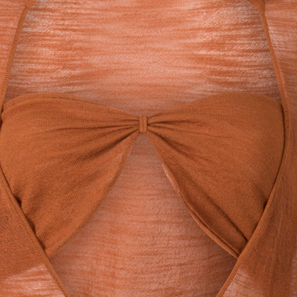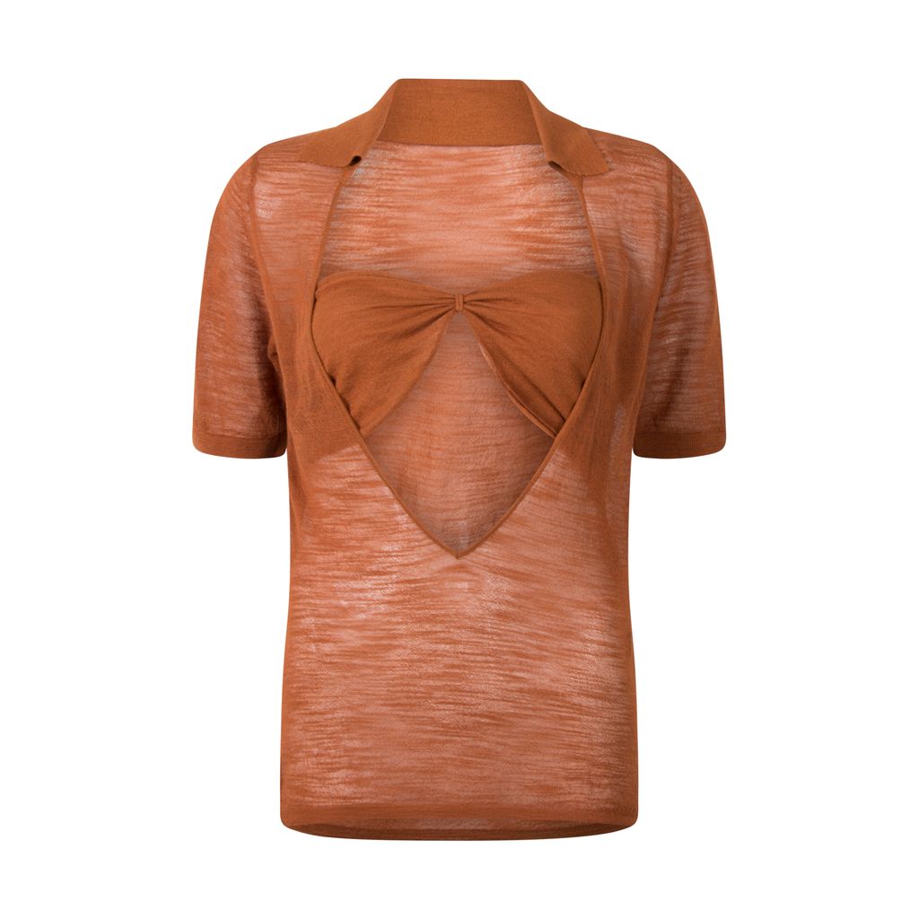 This delicate semi-sheer top from Jacquemus, features a point-collar deep-cut neckline, and has an inner bandeau with a strappy halter attachment. In excellent condition, no signs of wear.
