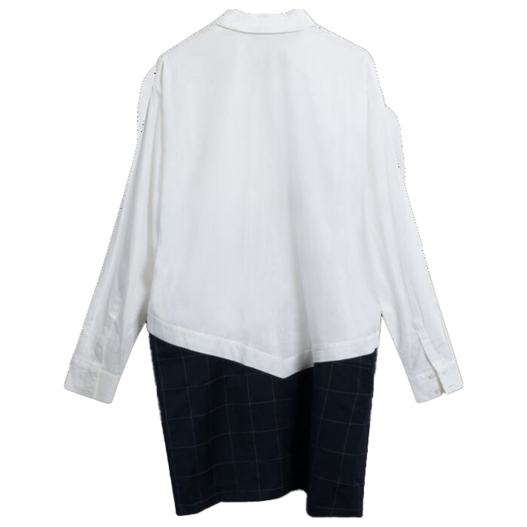 This oversized button-down tunic from Jacquemus features printed paneled fabric detail, drop sleeves, drop waist, large front patch pocket, and cuffs with double-button fastenings. In good condition. With tags.