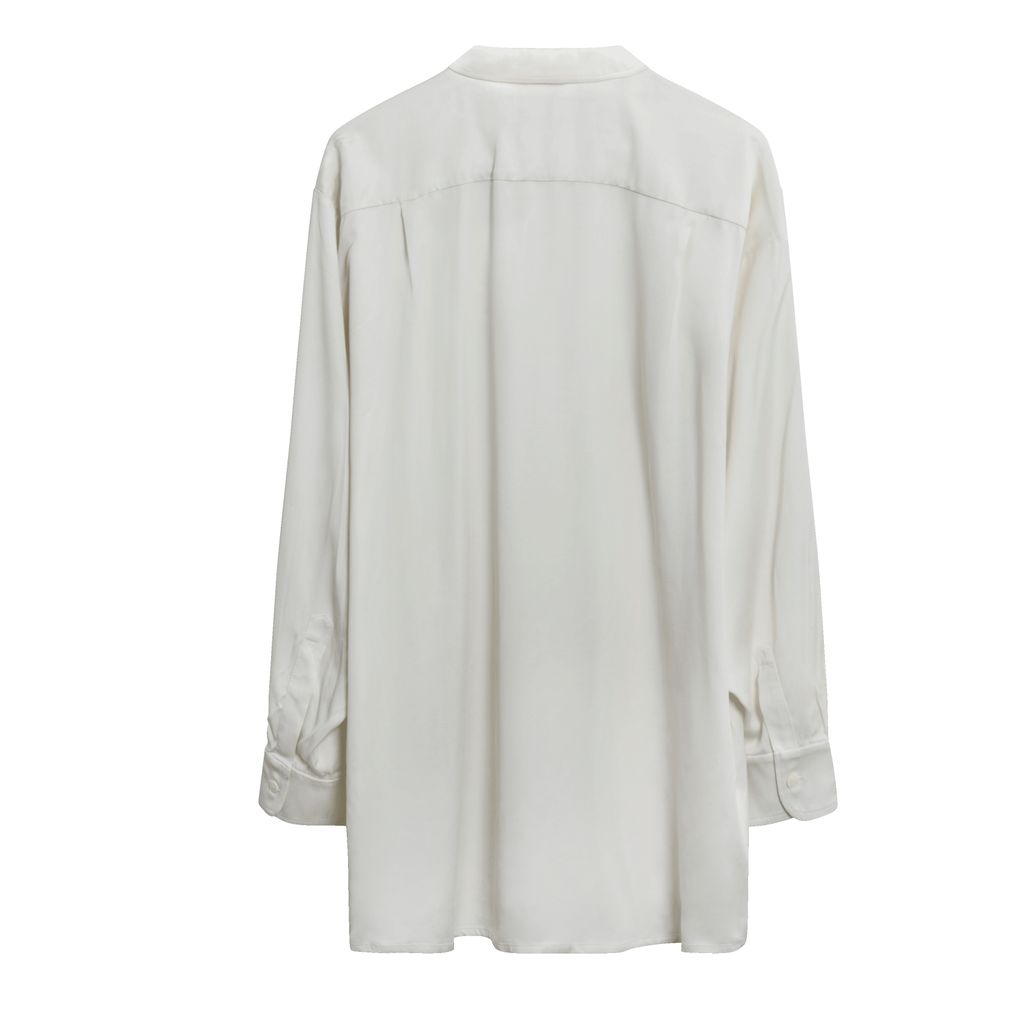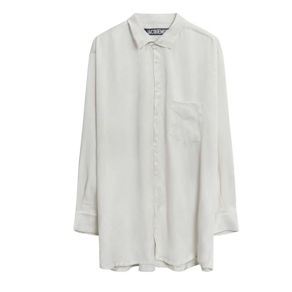 Part of the Une soirée intime avec Jacquemus capsule collection, this long sleeve viscose shirt features a spread collar with button front closures, patch pocket at chest, single-button barrel cuffs, droptail hem, and tonal hardware.
