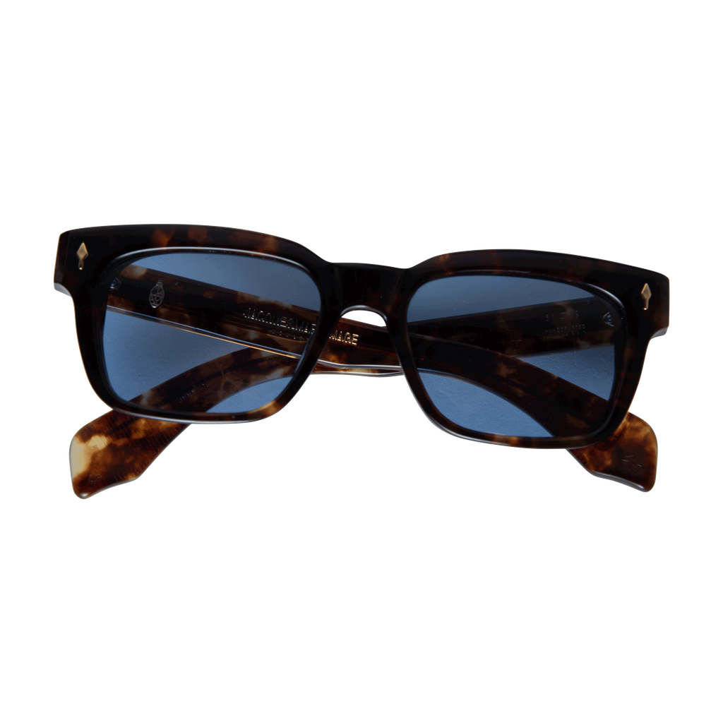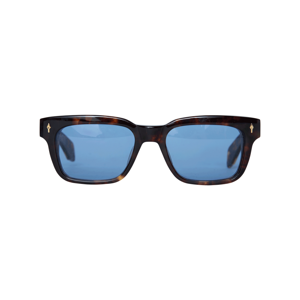 Jacques Marie Mage Molino Sunglasses in Argyle features acetate front, built-up saddle bridge, arrowhead front pin detail, and spur side rivets.
