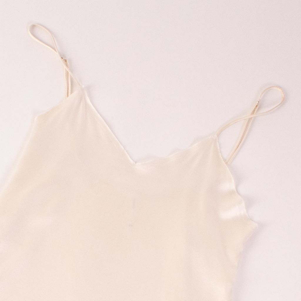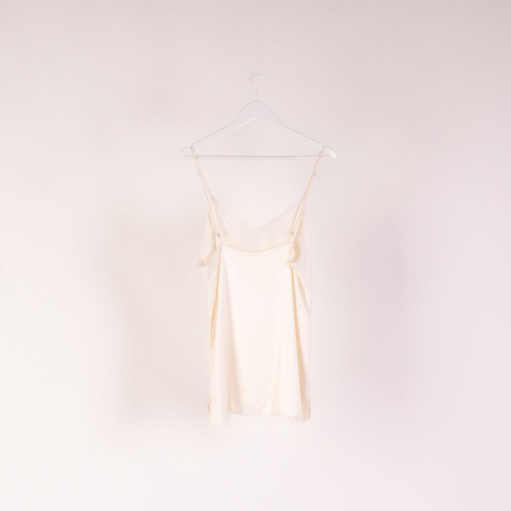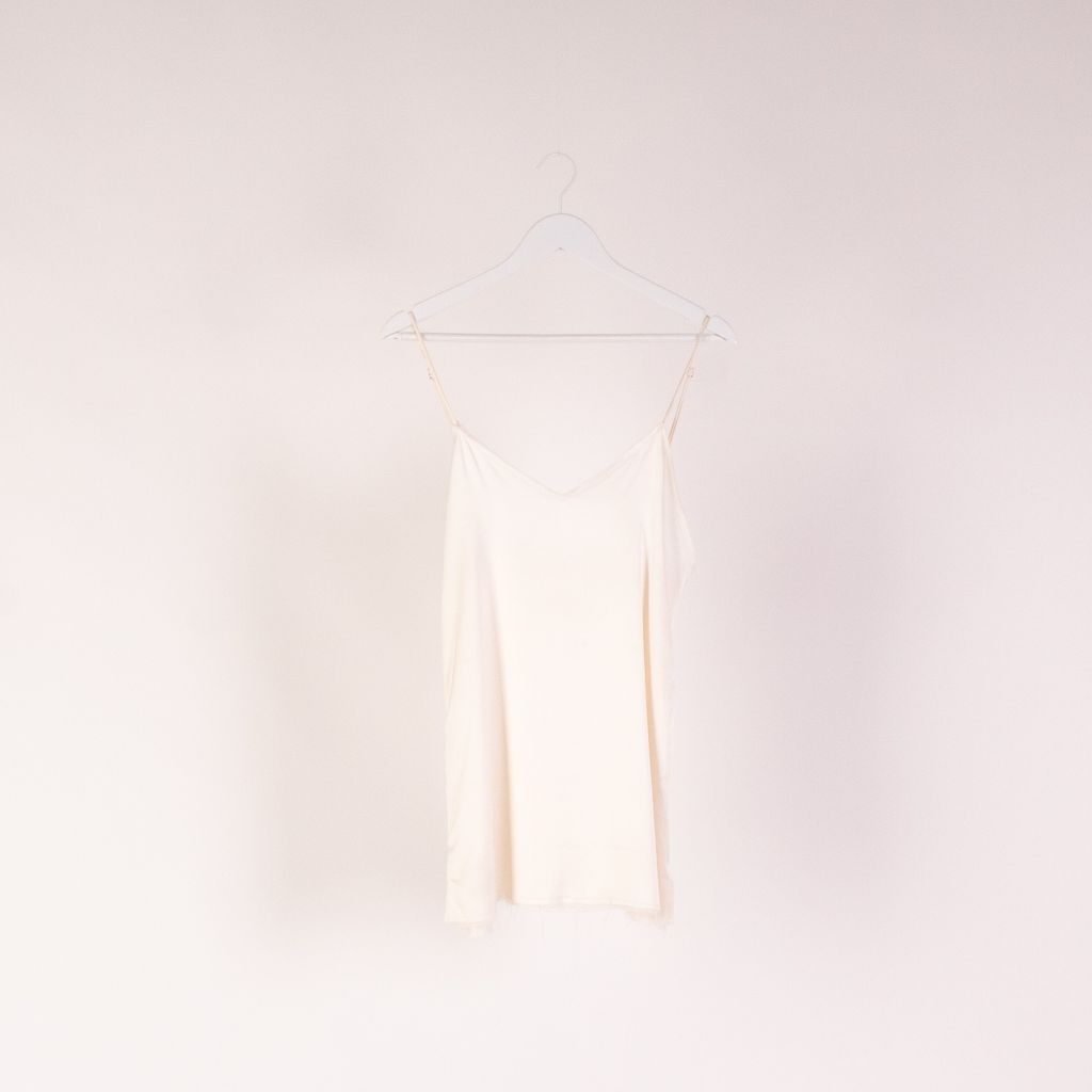 This dress from Jaest Hanna's kickstarter backed line is the epitome of an elevated basic. Features adjustable tank strap, side slit, and minor signs of wear. Signs of wear include fraying along bottom hem.